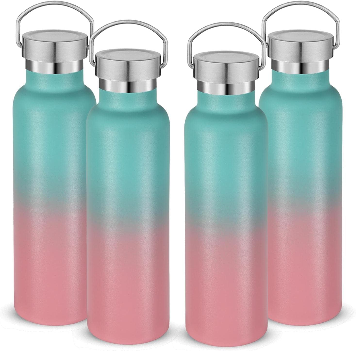 Neihepal 20 oz Insulated Water Bottles Bulk 4 Pack,Stainless Steel Double Wall Sport Bottle with Lid of Handle,Metal Reusable Thermoses Flask for School,Cyclists,Hikers,Gift (Green-Pink,Set of 4)