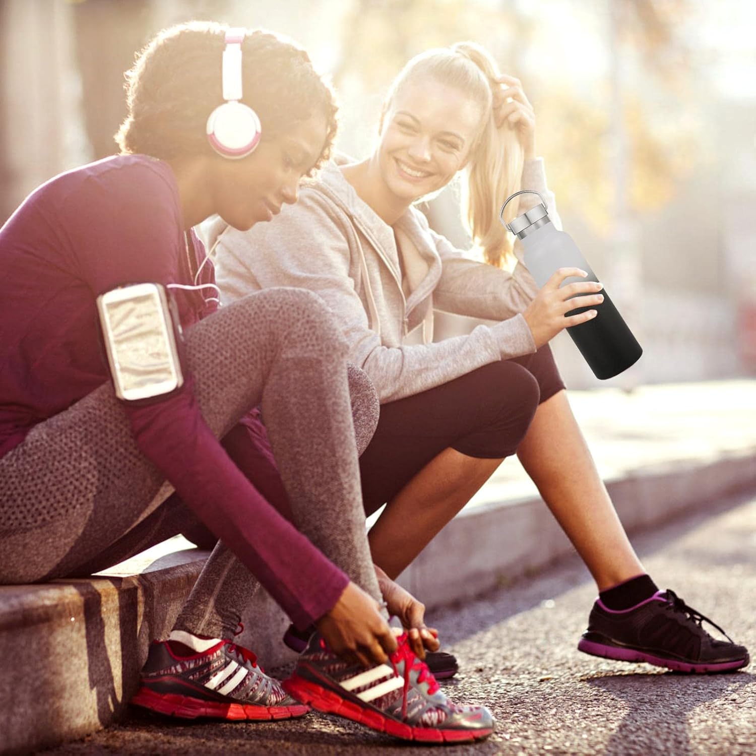 Neihepal 20 oz Insulated Water Bottles Bulk 2 Pack,Stainless Steel Double Wall Sport Bottle with Lid of Handle,Metal Reusable Thermoses Flask for School,Cyclists,Hikers,Gift (White-Black,Set of 2)