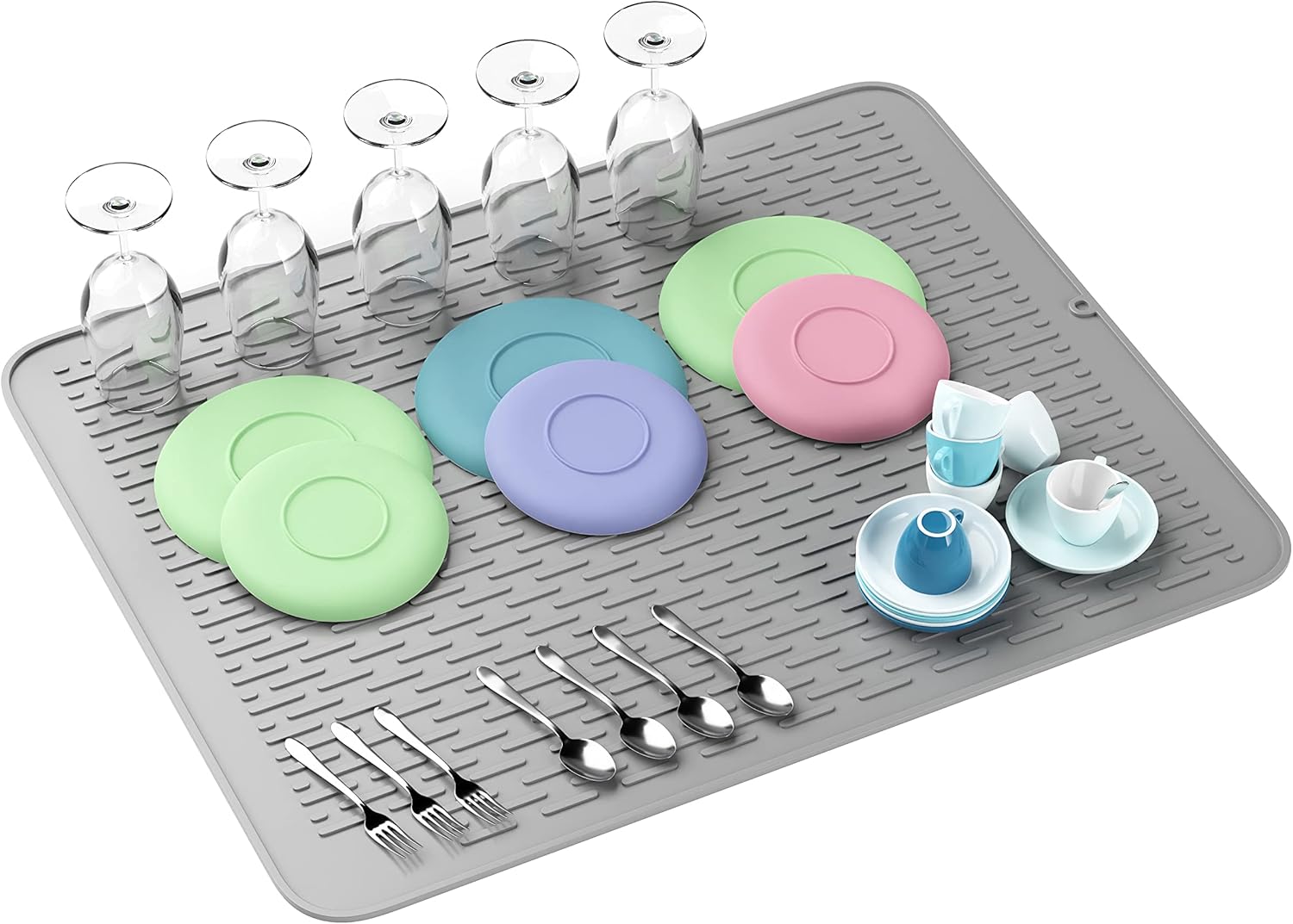 - Quick-Drying Technology: Extra Large drying mat silicone material helps reduce moisture buildup and dries your dishes quicker, keeping your kitchen counters neat and dry.