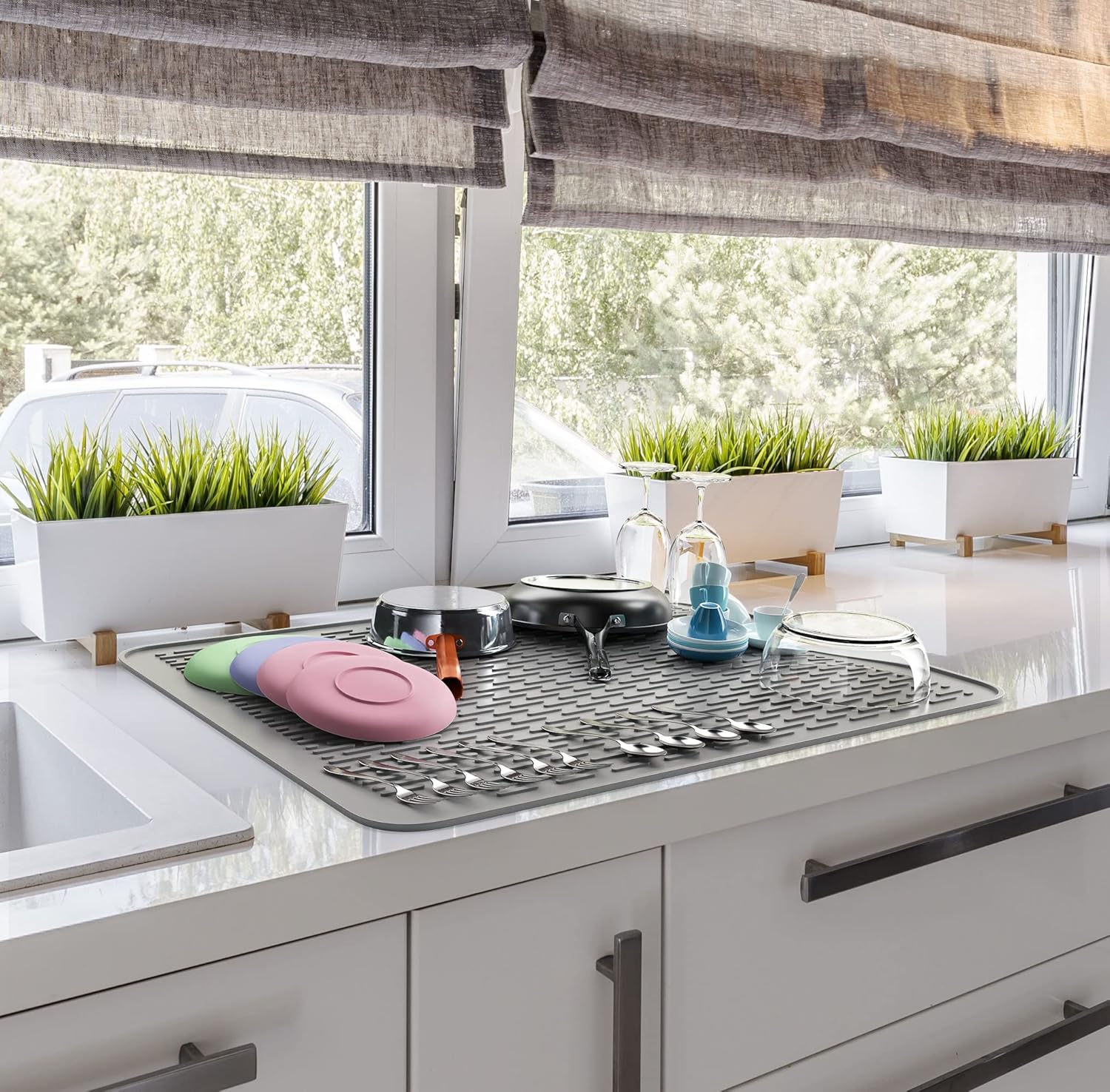 - Heat-Resistant & Multi-Functional: Use as a heat-resistant drying mat for hot cookware straight from the stove or oven. Our large drying mat versatile design makes it suitable for various kitchen tasks.