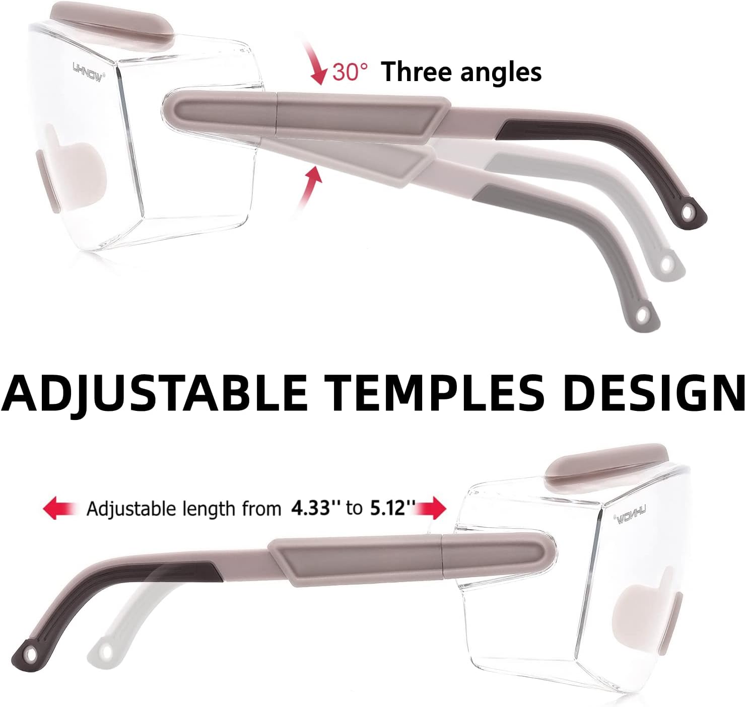 • 【ERGONOMIC FRAME TECHNOLOGY】To ensure a enjoyable fit, the length of the temple is designed to be adjustable. And the angle of the temples are also can be adjusted about 30 degrees to ensure that they match your ears and your face. Soft rubber brow protection provides additional coverage, keeping sweat and debris out of your eyes.