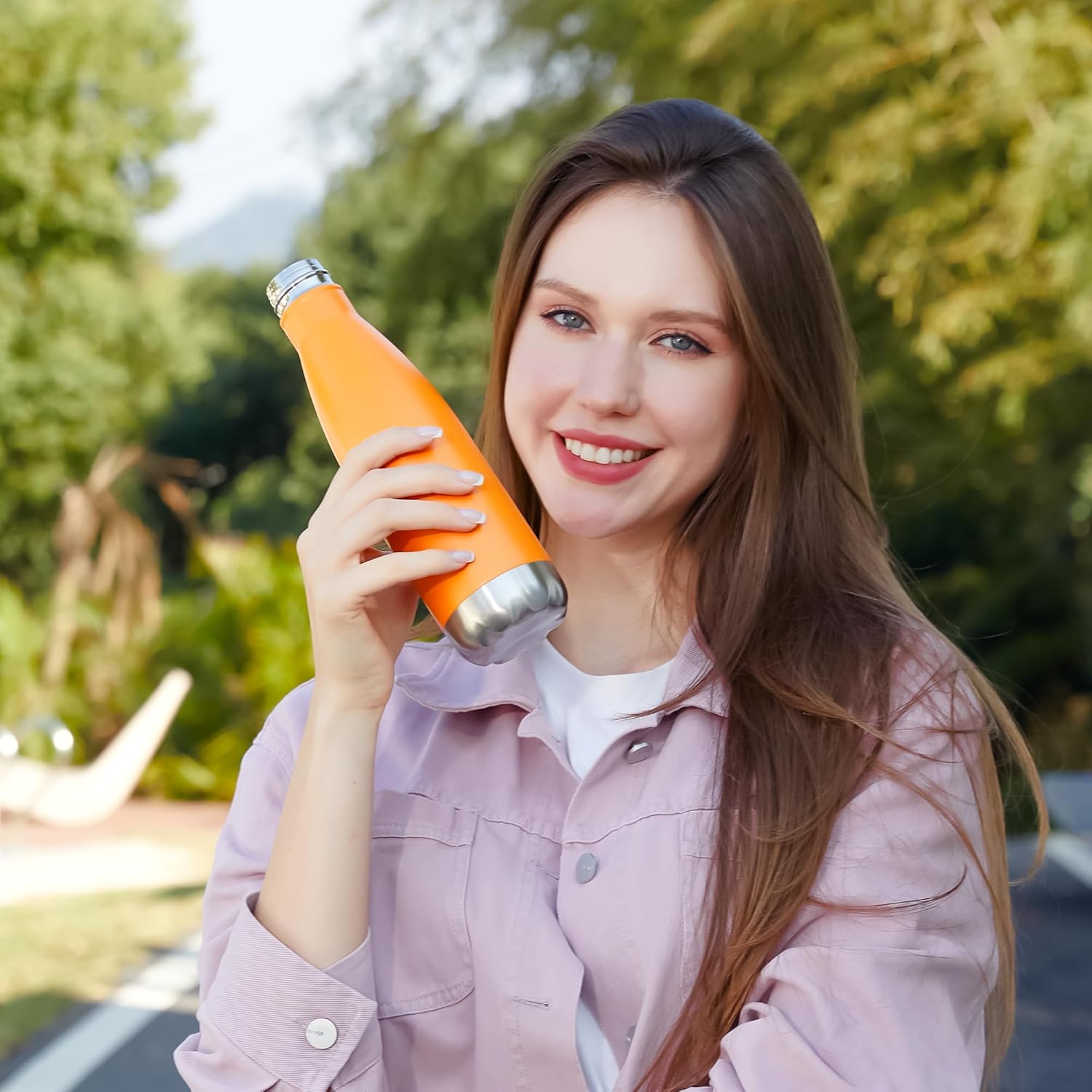 MEWAY 17oz Sport Water Bottle Vacuum Insulated Stainless Steel Leak-Proof Double Wall Cola Shape Water Bottle,Keep Drinks Hot & Cold(Orange,1 Pack)