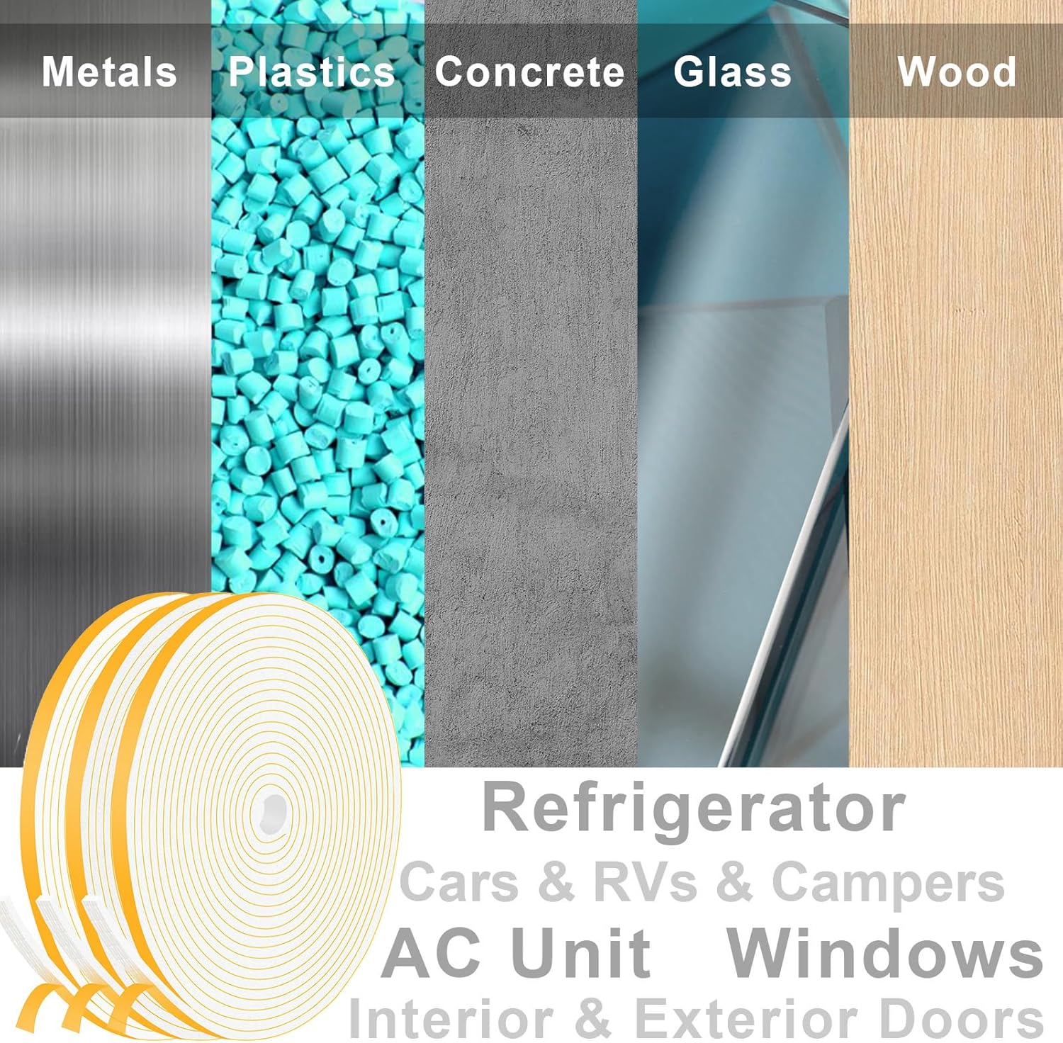 - 🟠WIDE APPLICATION-Trisiki's weather stripping for door frame is a tough, durable self-stick tape with minimal compression and can help prevent rattles, vibrations and squeaks. It's widely used as a weatherstrip, or as a gasket or to cushion and stabilize major appliances, such as doors, windows, furniture, electrical cabinets, speakers, toys, handicrafts, sports equipment, vents, air conditioners, plumbing, hvac. Plus, on cars, trucks and boats