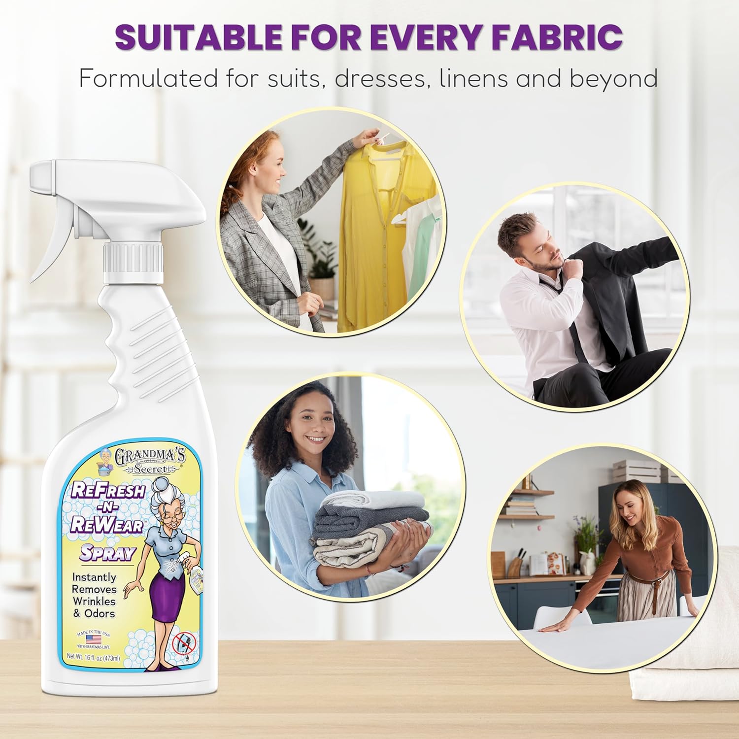 Grandma's Secret ReFresh N ReWear Spray - Instantly Removes Wrinkles & Odors - Wrinkle Release, Fabric Refresher Spray, Chlorine, Bleach and Toxin-Free - 16 Ounce