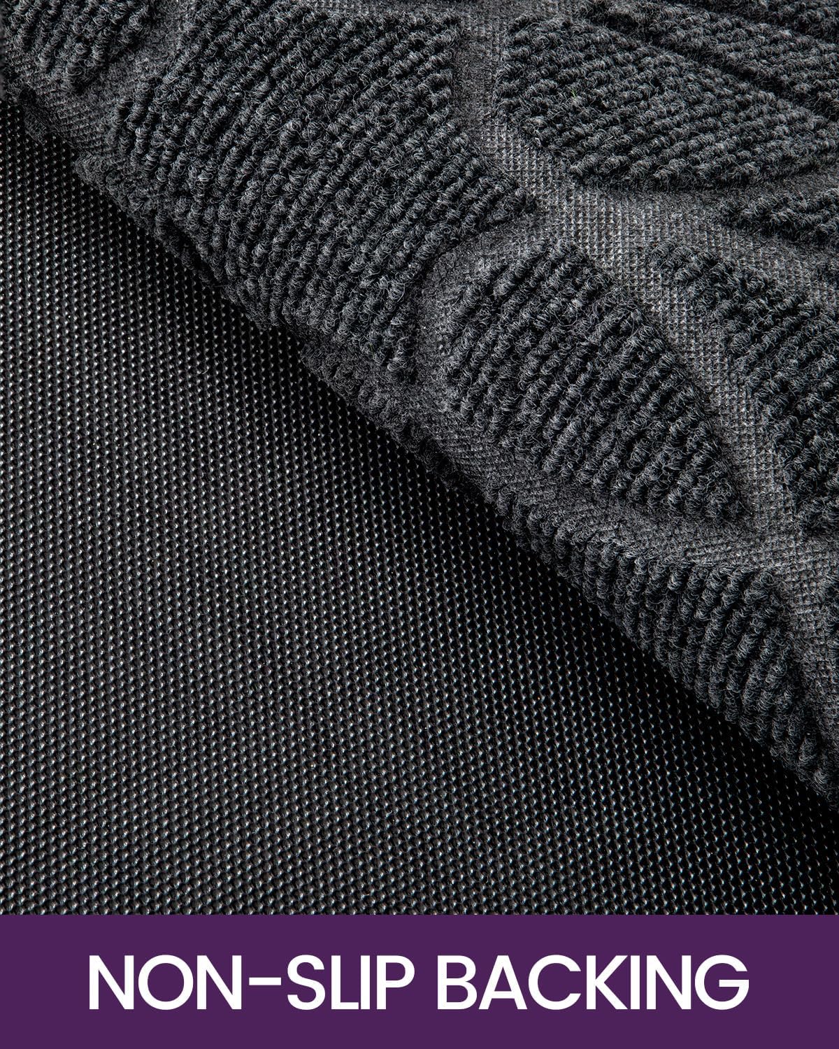 DEXI Front Door Mat Outside Entrance, Heavy Duty Non Slip Low Profile Doormat for Entryway, Trap Dirt and Moisture Welcome Mats, Easy Clean, Patio, Garage, 17x29, Grey