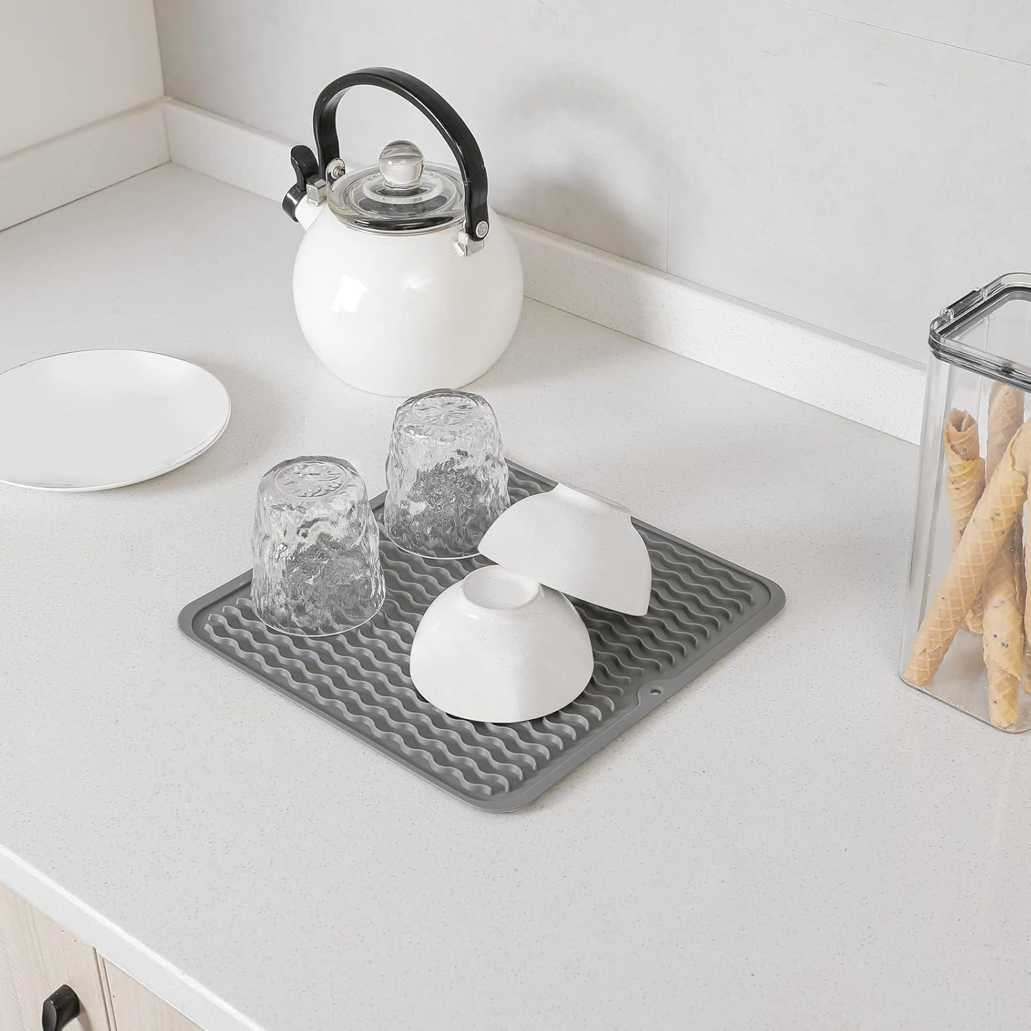 Silicone Dish Drying Mat for Multiple Usage,Easy clean,Eco-friendly,Heat-resistant Silicone Mat for Kitchen Counter or Sink,Refrigerator or Drawer liner Grey M 12 inches x 12 inches