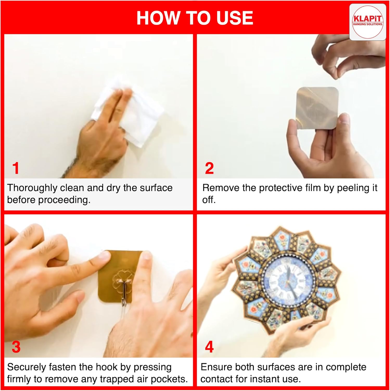 - Instant Use Technology: Skip the wait with KLAPiT SUPER HOOK’s Enhanced Nanotechnology adhesive. Simply apply to any surface and start hanging immediately—perfect for busy households.