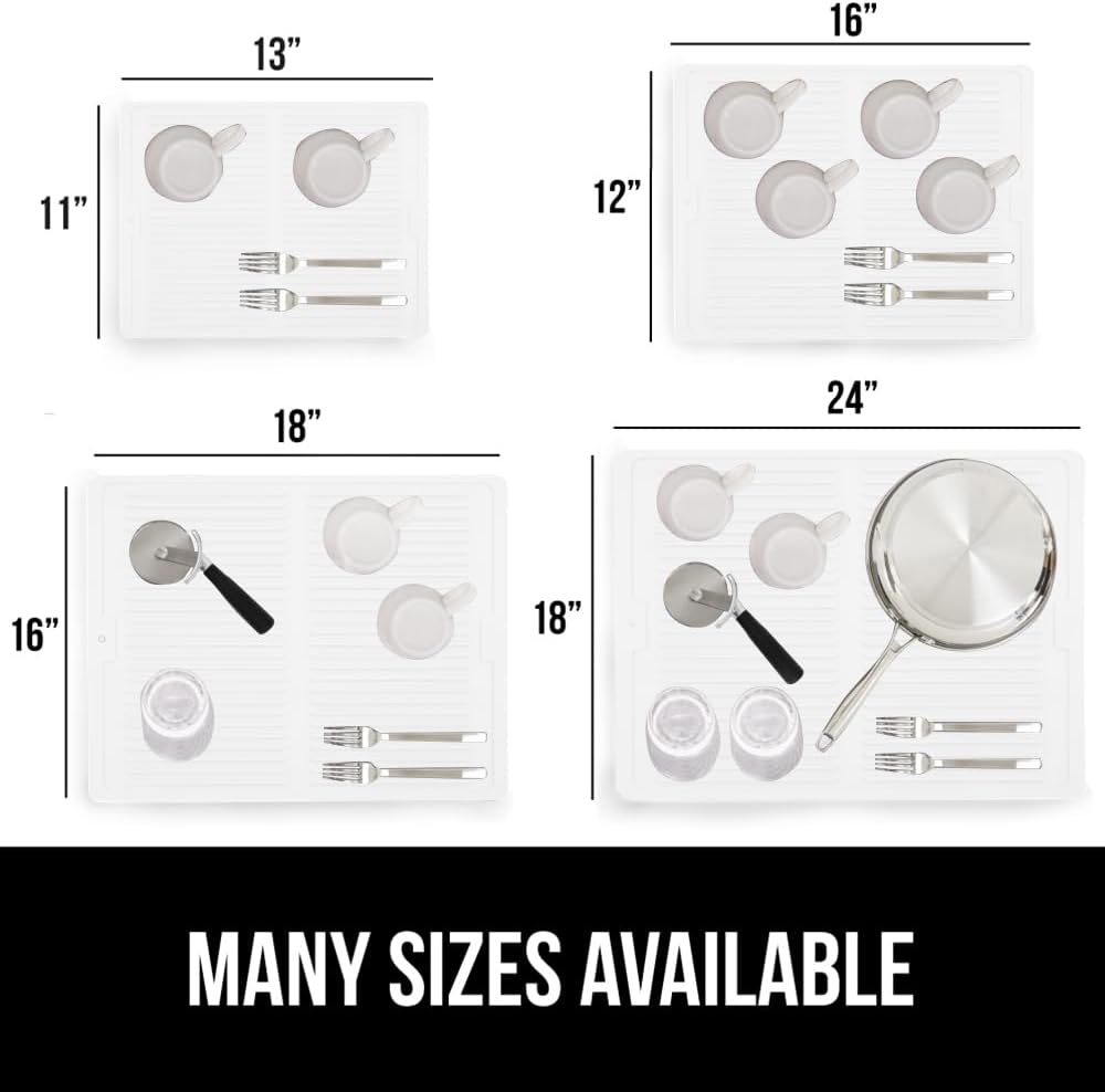 GORILLA GRIP 100% BPA-Free Patented Silicone Dish Drying Mat for Kitchen Counter, Water Catching Ribbed Design, Easy Clean Waterproof Sink Liner, Heat Resistant, Fits Under Rack, 13x11 Inch, White