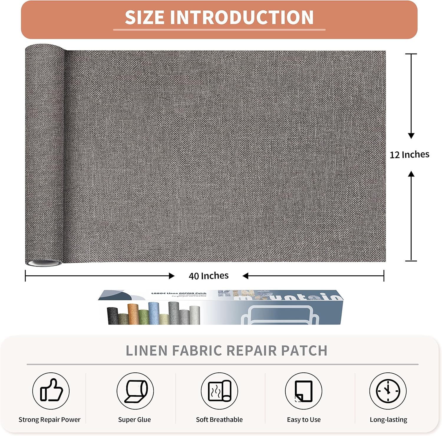 KING MOUNTAIN Fine Linen Repair Patches, Self-Adhesive Linen Fabric Patches, 12X40 inch Extra Size, Multi Color, Can be Used for Linen Sofa Repair and Linen Clothes Repair(12" x 40",Cream-Gray)