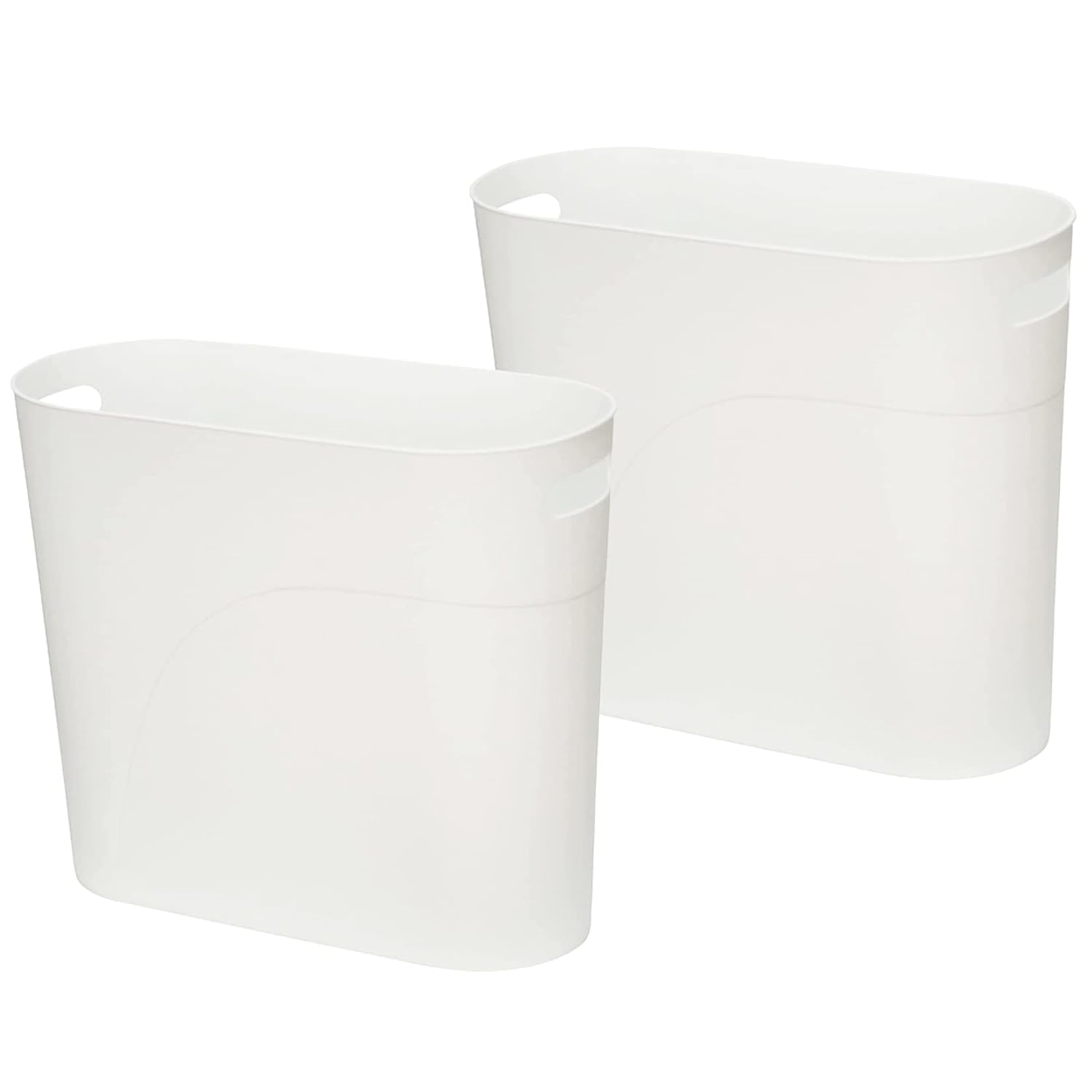 Small Trash Can Plastic Bathroom Wastebasket 3.2 Gallon Slim Garbage Container Bin with Handle for Home Kitchen Bathroom Bedroom Office, 2 Pack (White)