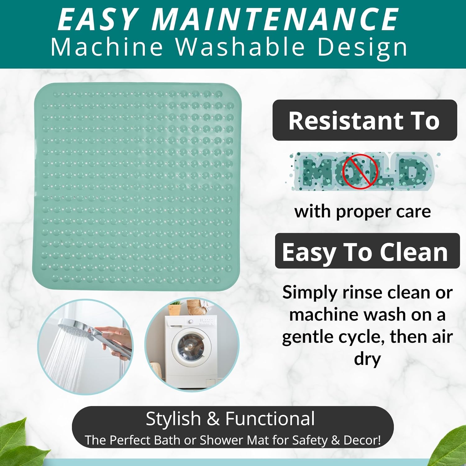 ENKOSI Extra Large Square Non Slip Shower Mat - 31 x 31-inch XL Bathroom Shower Mat - Square Shower Matts for Shower Stall Floors | Secure Suction Cups and Drain Holes (31x31 Aqua Green)