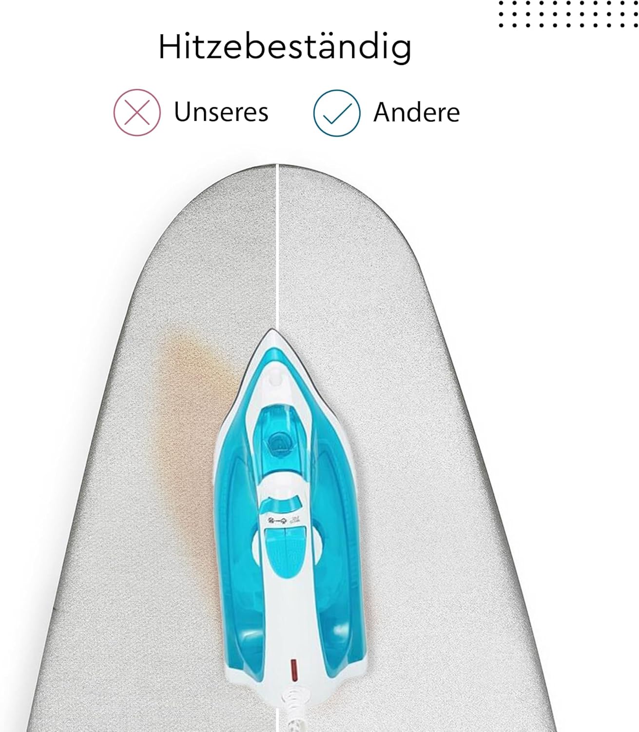 - SUPERIOR MATERIALS: 3 Layers of protective materials makes this cover into an ideal Ironing Board surface. Special Siliconised Silver coating on Cotton Fabric makes the surface smooth for ironing, reflects heat back into the garment, resulting in the fastest crease removal. This enables huge saving in ironing time and electricity. The Heat Proof Metallised coating can withstand very high Ironing temperatures even above 400* F / 220* C