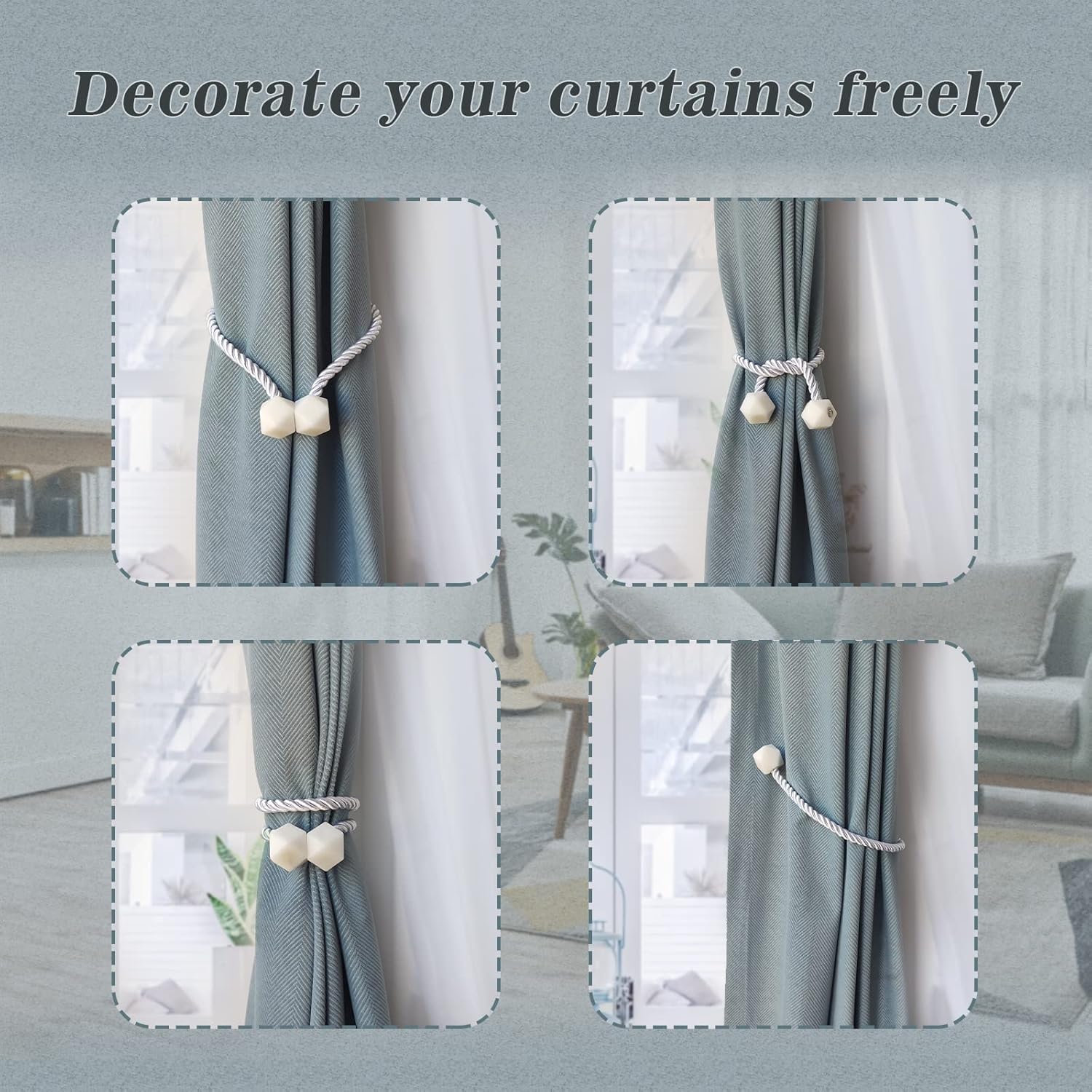 - π[Upgrade Powerful Magnetic] Our magnetic curtain tiebacks magnets use high-end new imported nickel-plated magnets, with strong corrosion resistance and durability, more magnetic than ordinary magnetic curtain tiebacks, and do not rust and not lose color. The rope of curtain tie adopts upgrade thickened solid polyester yarn, which is not only durable, but also not easy to wear or pilling.