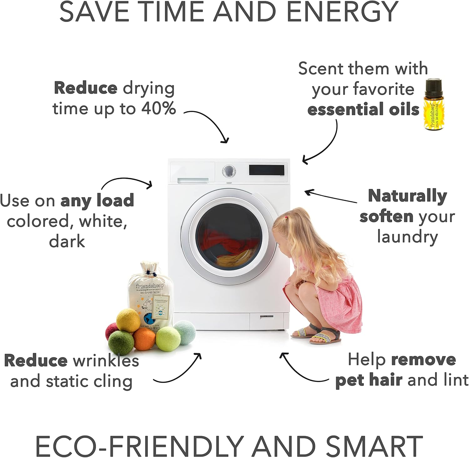 - ECO-FRIENDLY AND REUSABLE FOR 1000+ LOADS, replaces dryer sheets & liquid fabric softeners. Makes your laundry soft and fluffy, reduces wrinkles and static cling, and shortens drying time by up to 40% depending on load size. Your sheets and towels are fluffier, less balling and twisting. Makes you SAVE TIME, ENERGY, AND MONEY! All by keeping safe and healthy you, your family and the environment.