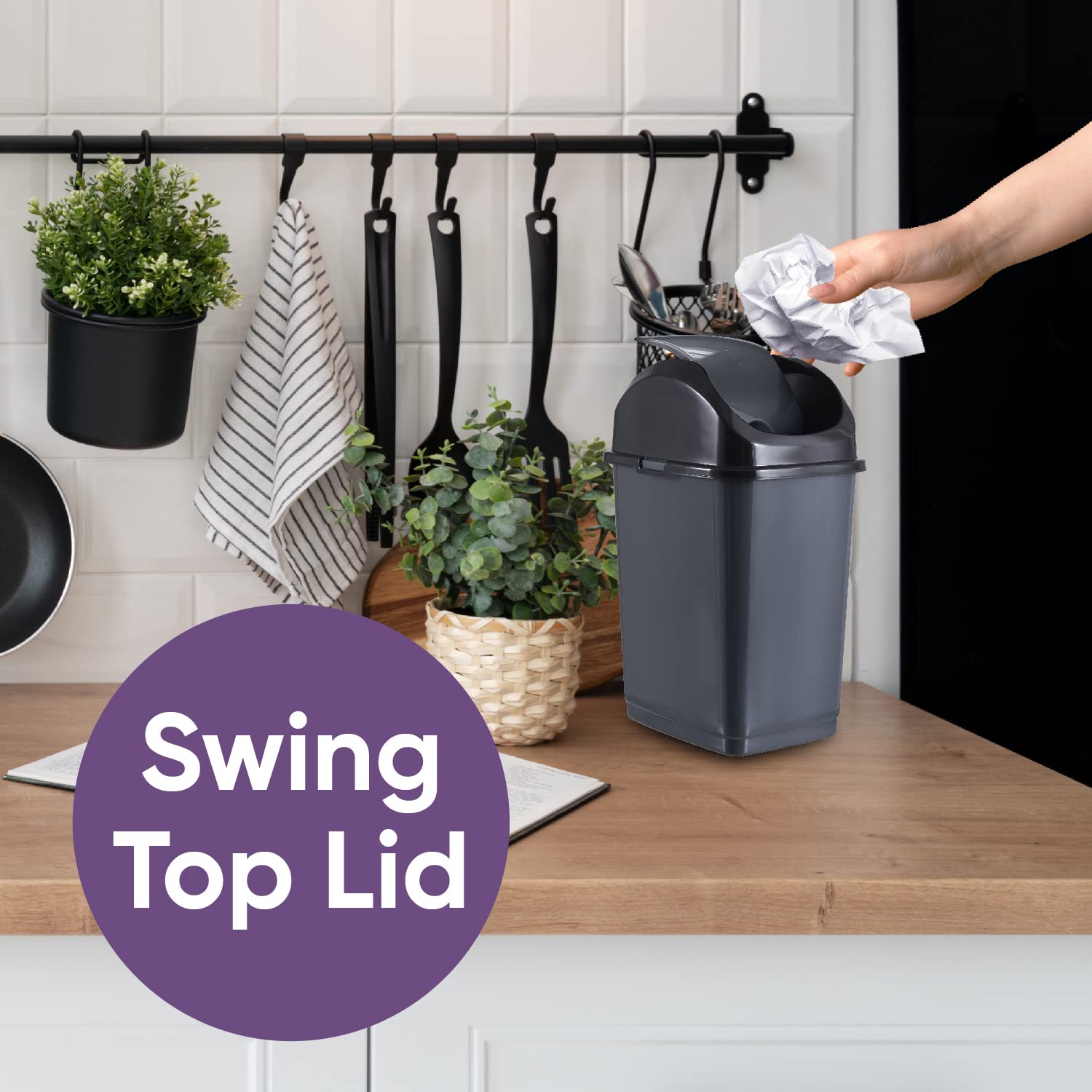 Superio Mini Desktop Trash Can with Swing Top Lid Portable Plastic Garbage Can for Countertop, Desktop, Make up Vanity, Bathroom, Car, Under Sink, Dorm Compact Waste Bin 5 L 1.25 Gal (2, Grey)