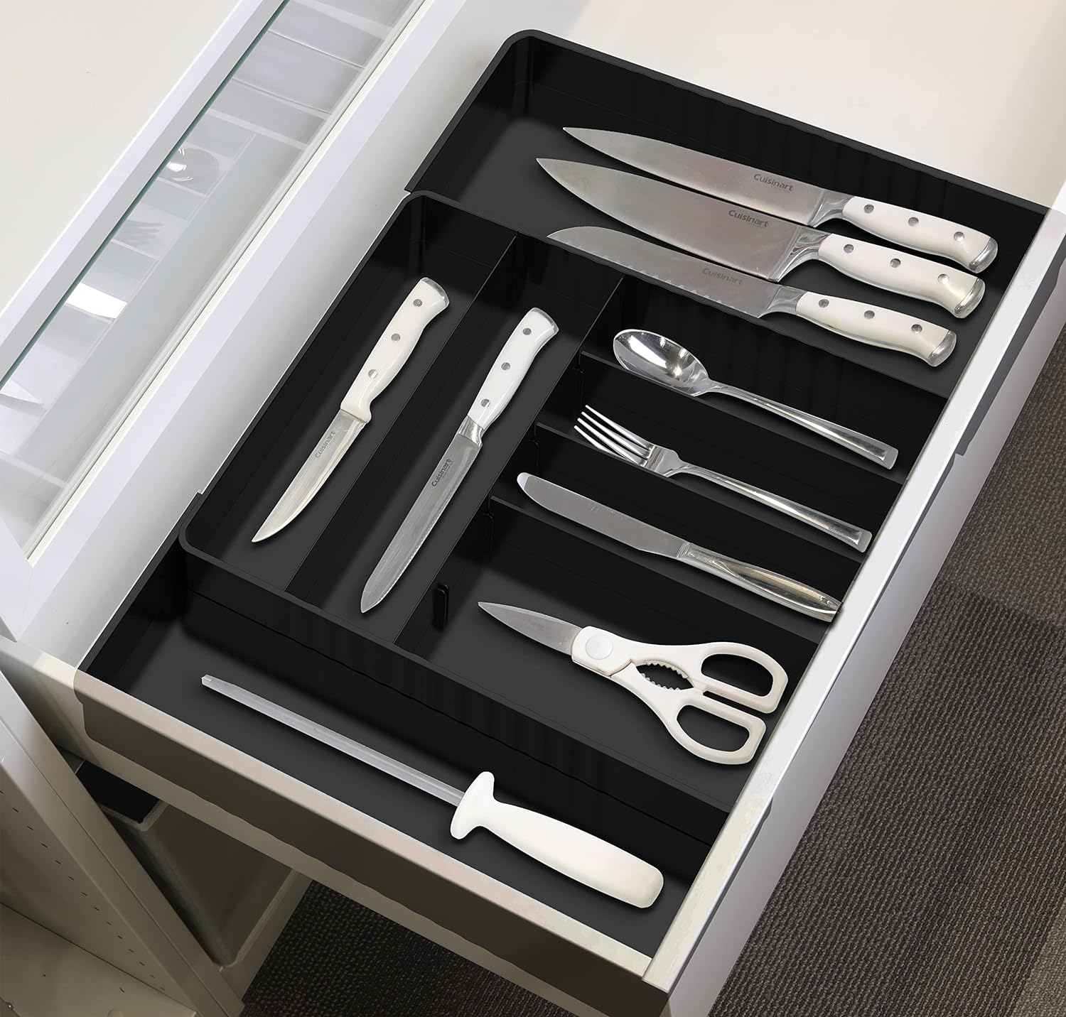 - 9 Compartments with Removable Dividers: Features nine sections with adjustable dividers to accommodate utensils, flatware, and kitchen tools of different shapes and sizes.