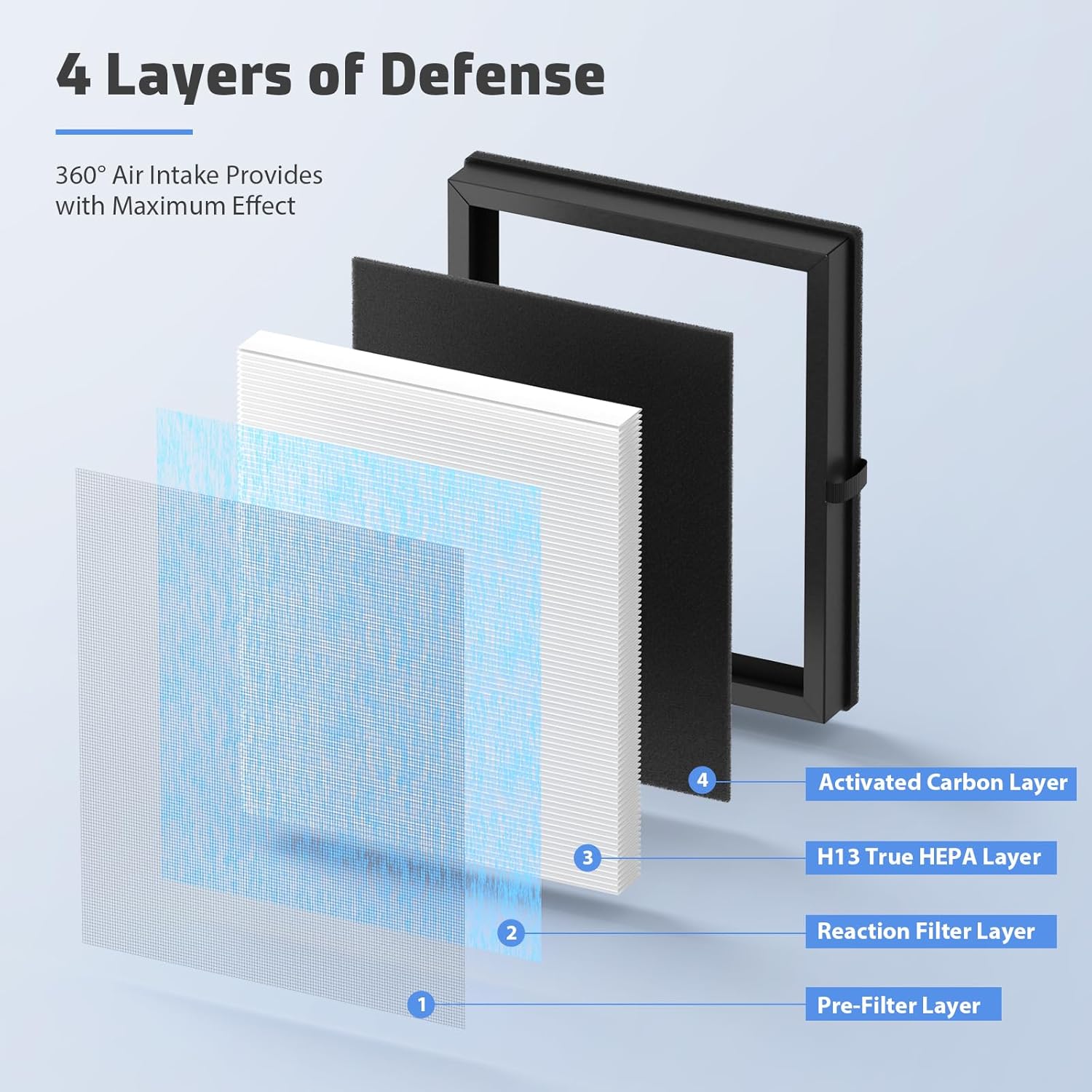 - 【Filtration Performance】High-efficiency filtration layer improves air quality and promotes your health, can filter airborne such as smoke pollen dander hair smell.