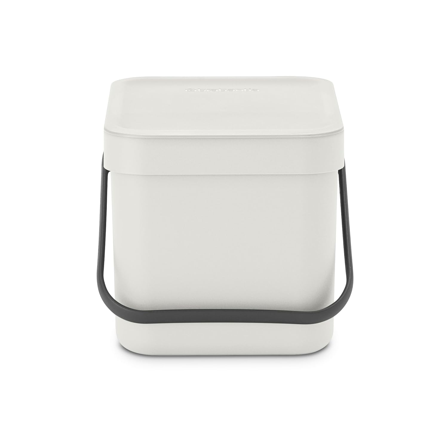 Brabantia Sort & Go Food Trash Can (1.6 Gal/Light Gray) Small Countertop Kitchen Compost Caddy with Handle & Removable Lid, Easy Clean, Fixtures Included for Wall/Cupboard Mounting