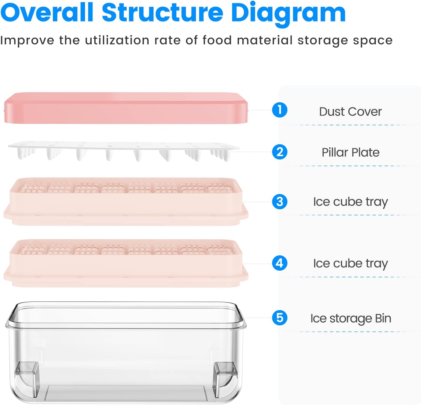 - Food Grade Material & BPA Free:This ice trays for freezer with lid and bin are made of food grade PP material, which is safe and can be frozen and used repeatedly for a long time.The ice cube tray is NOT DISHWASHER SAFE