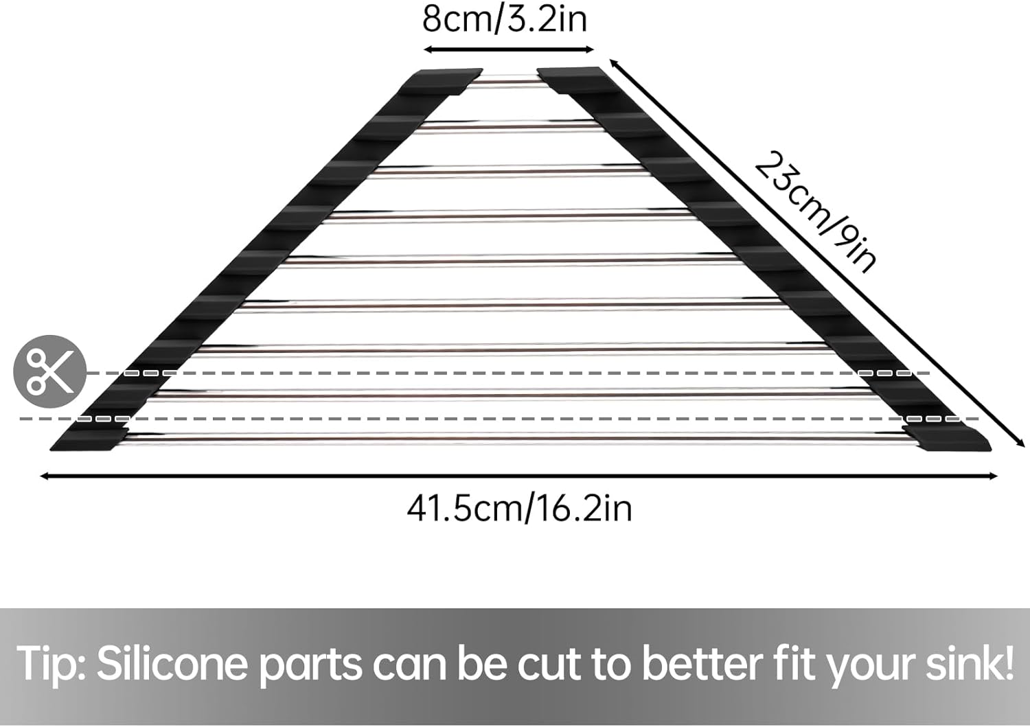 - ✔️【Space Saving】This over-sink dish drying rack takes up little space and the foldable design allows you to quickly roll it up for easy storage and make your kitchen look less cluttered. It is the best cutlery drainer for your kitchen and can replace bulky dish racks and colanders. Suitable for most standard sinks and drawers. Please kindly check your sink size before purchasing.