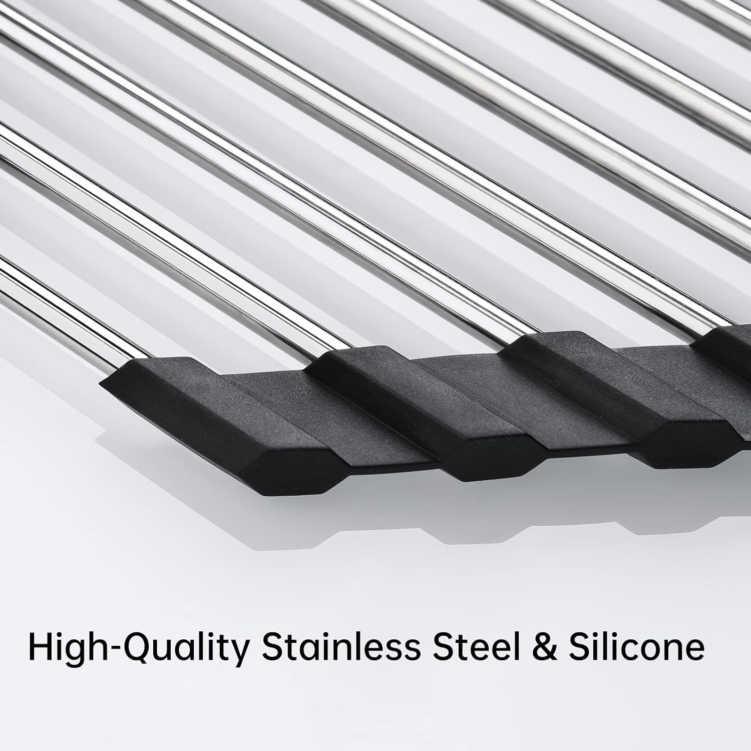 - ✔️【Food Grade Materials】Made of premium quality SUS304 stainless steel and BPA-free food safe silicone edges, this drying rack is waterproof, rust-proof, durable and scratch-resistant. Solid construction with non-slip silicone ends securely attached to stainless steel rods.