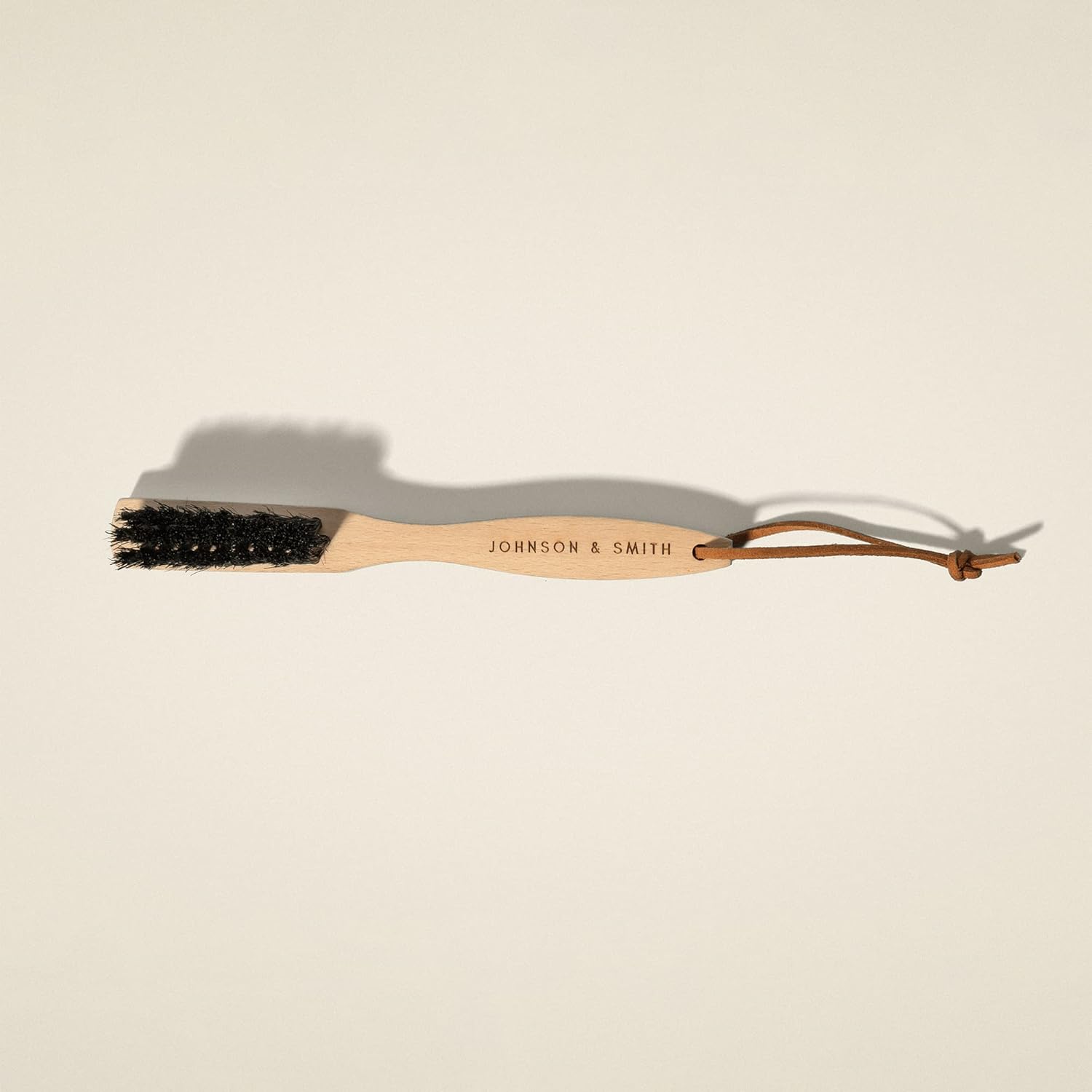 - β Remove Stains From Your Favorite Leather Items: Apply some stain solution on your couch, car seat, shoes, purse, or jacket, work into the leather with our stain removal brush and make stubborn oil, grass, or mud stains history. Hang the brush from the leather loop and let it dry before the next use.