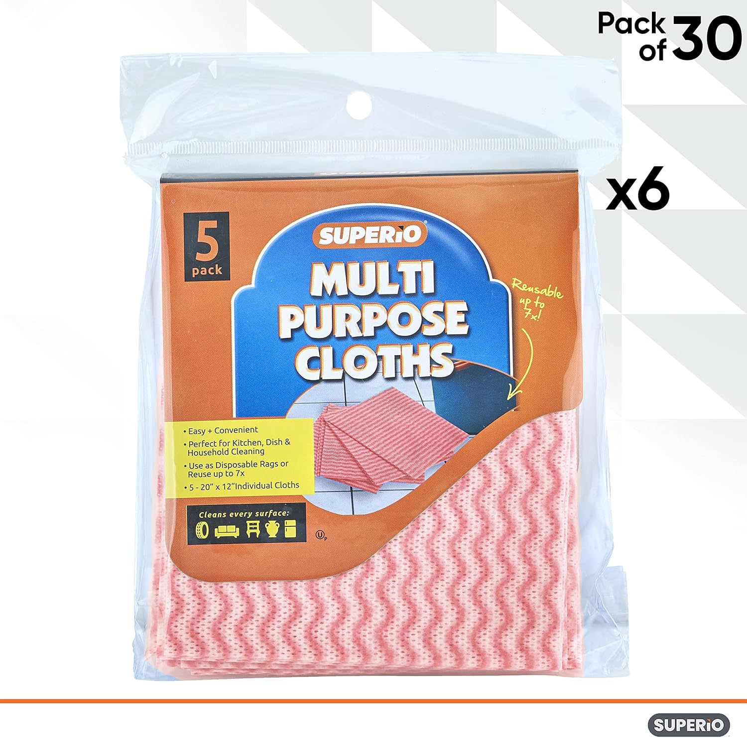 Superio Handy Wipes For Kitchen - Red Reusable Multi-Purpose Heavy-Duty Cleaning cloth for house, Bathroom, and office. Disposable Dish Towel (30)