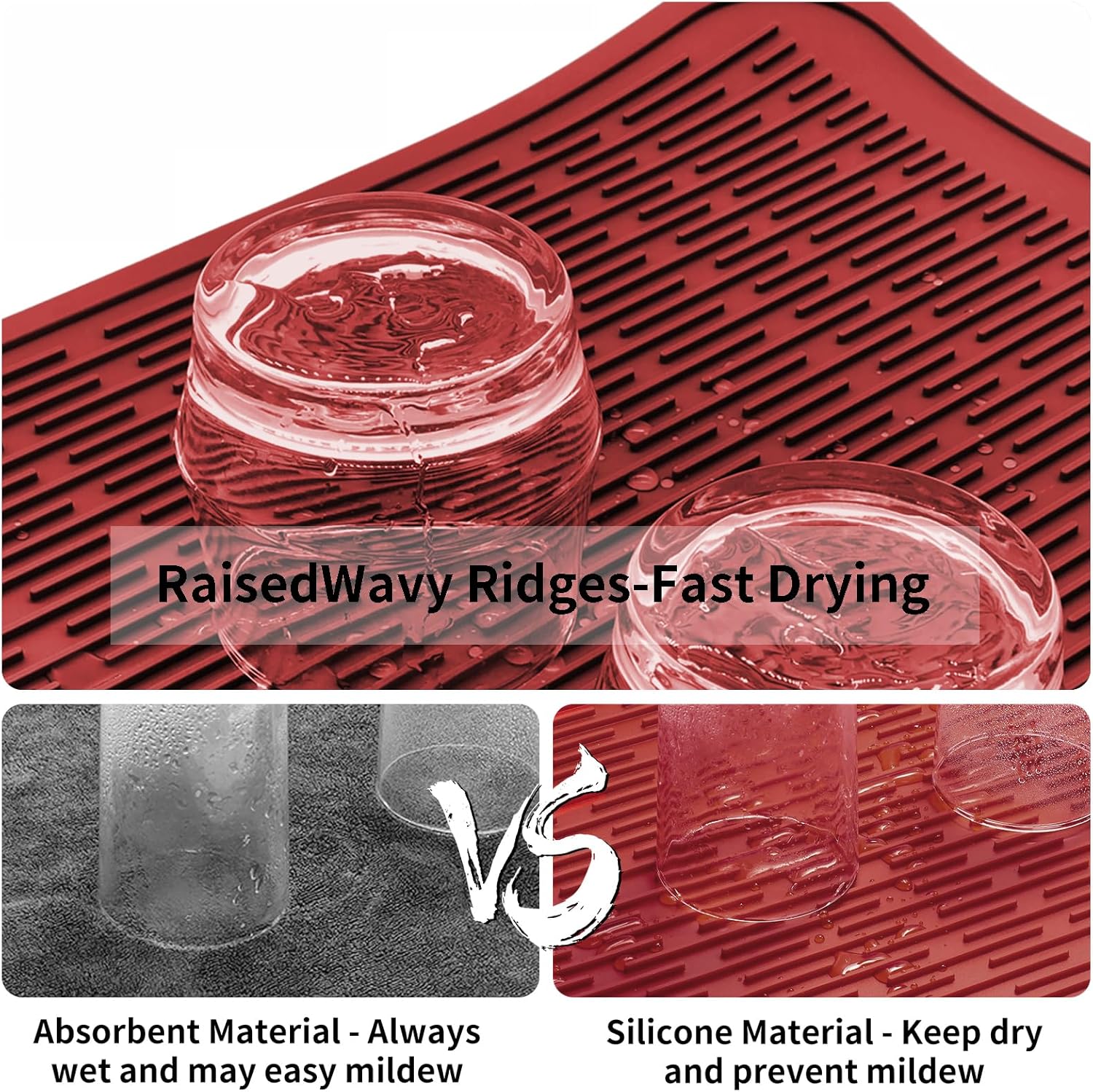 ZLR Silicone Dish Drying Mat for Kitchen Counter, Eco-Friendly Fast Dry Dish Mat, Easy Clean Multi Usage Drying Matt, Heat Resistant Trivet, 16" x 18" XL, Lave Red