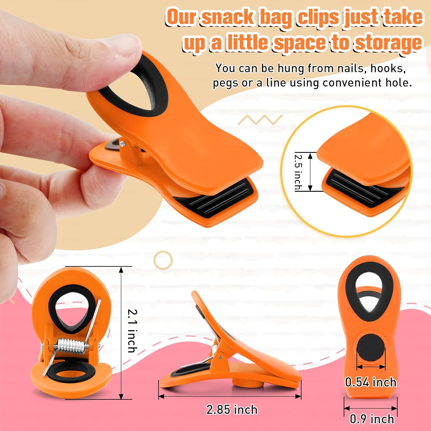 FINDMAG 12 Pack Big Chip Clips, Orange Magnetic Clip for Plants, Plastic Snack Clips for Bags, Food Sealing Clips with Magnet for Chips, Snacks, Fridge and Food Organization
