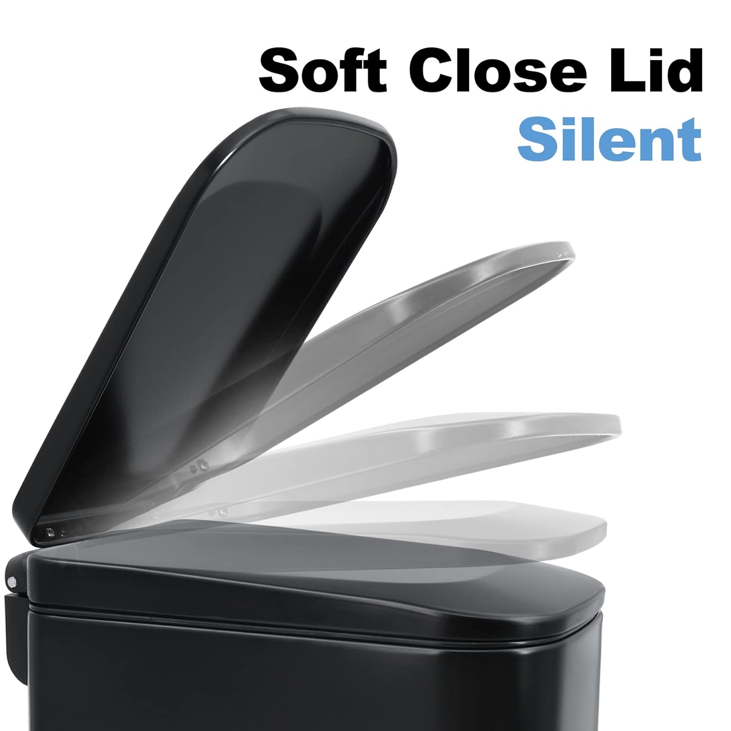 TrashAid Small Bathroom Trash Can with Lid Matt Black Soft Close, 6 Liter / 1.6 Gallon Stainless Steel Garbage Can Narrow with Removable Inner Bucket, Step Pedal