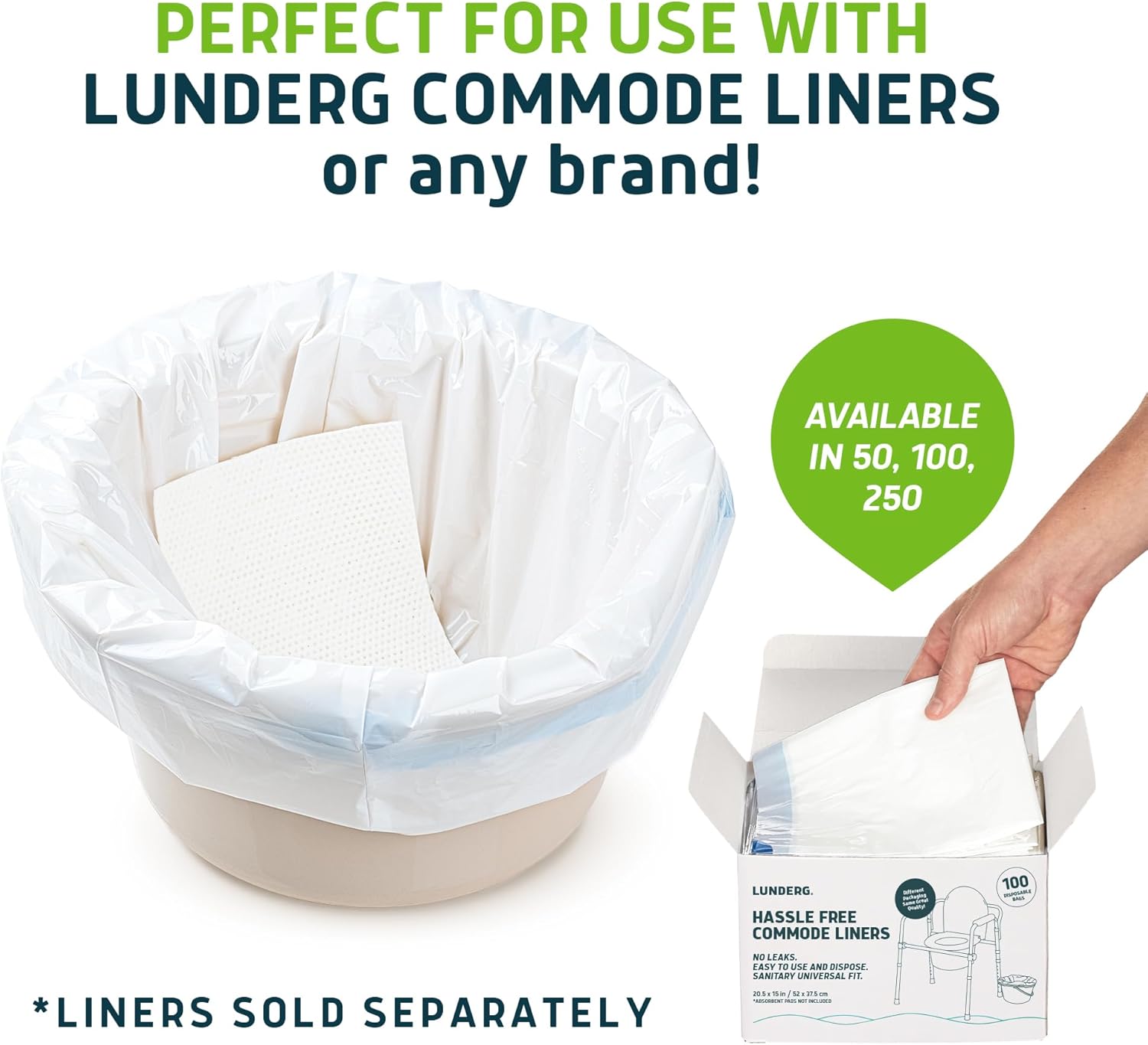 - Light Aloe Scent & Best Value: Lunderg pads are medical grade and come in a sturdy, durable box with 250 gel absorbent pads. You save money when buying pads separately from toilet commode bags. Work great with Lunderg commode liners or any brand of toilet liners.