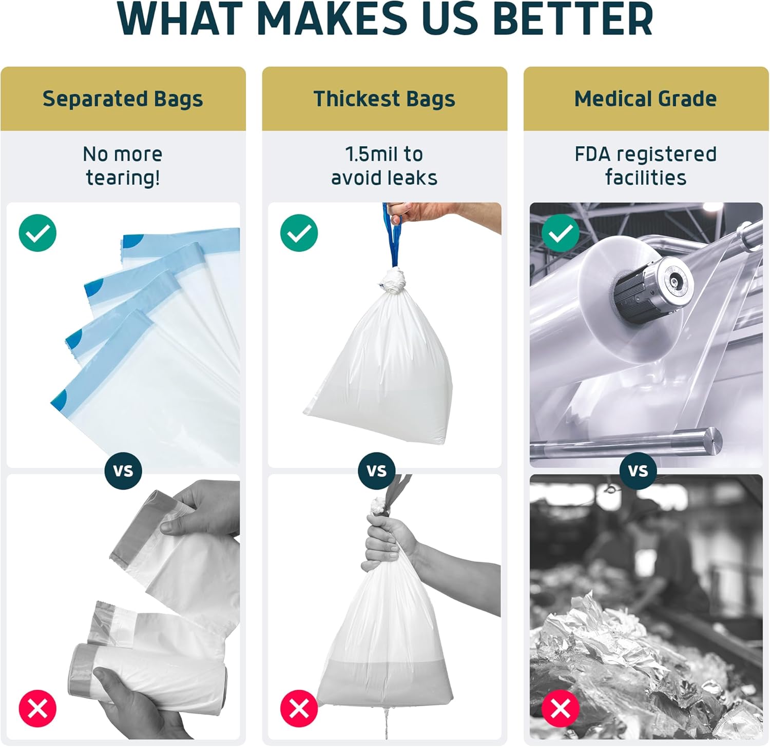- Ideal For At Home & Commercial Usage: Unlike competitors that come in a roll, our commode liners and jasmine scented pads come in sturdy and durable boxes with already separated bags and pads, making life so much easier for caregivers, family care, and self-care.