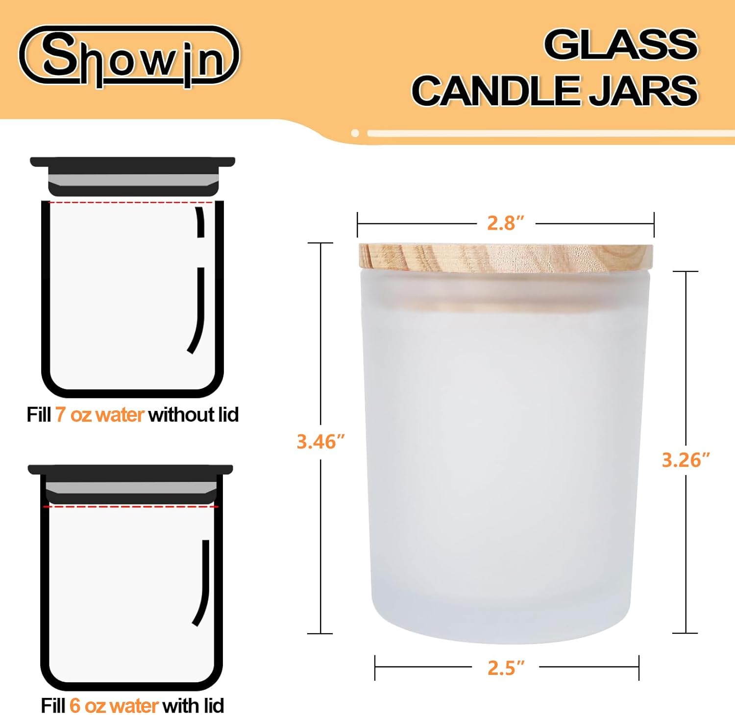 Thick Candle Jars for Making Candles 12 Pcs, 7 OZ Empty Jars with Wood Lids for Candle Making, Sample Container, Frosted White