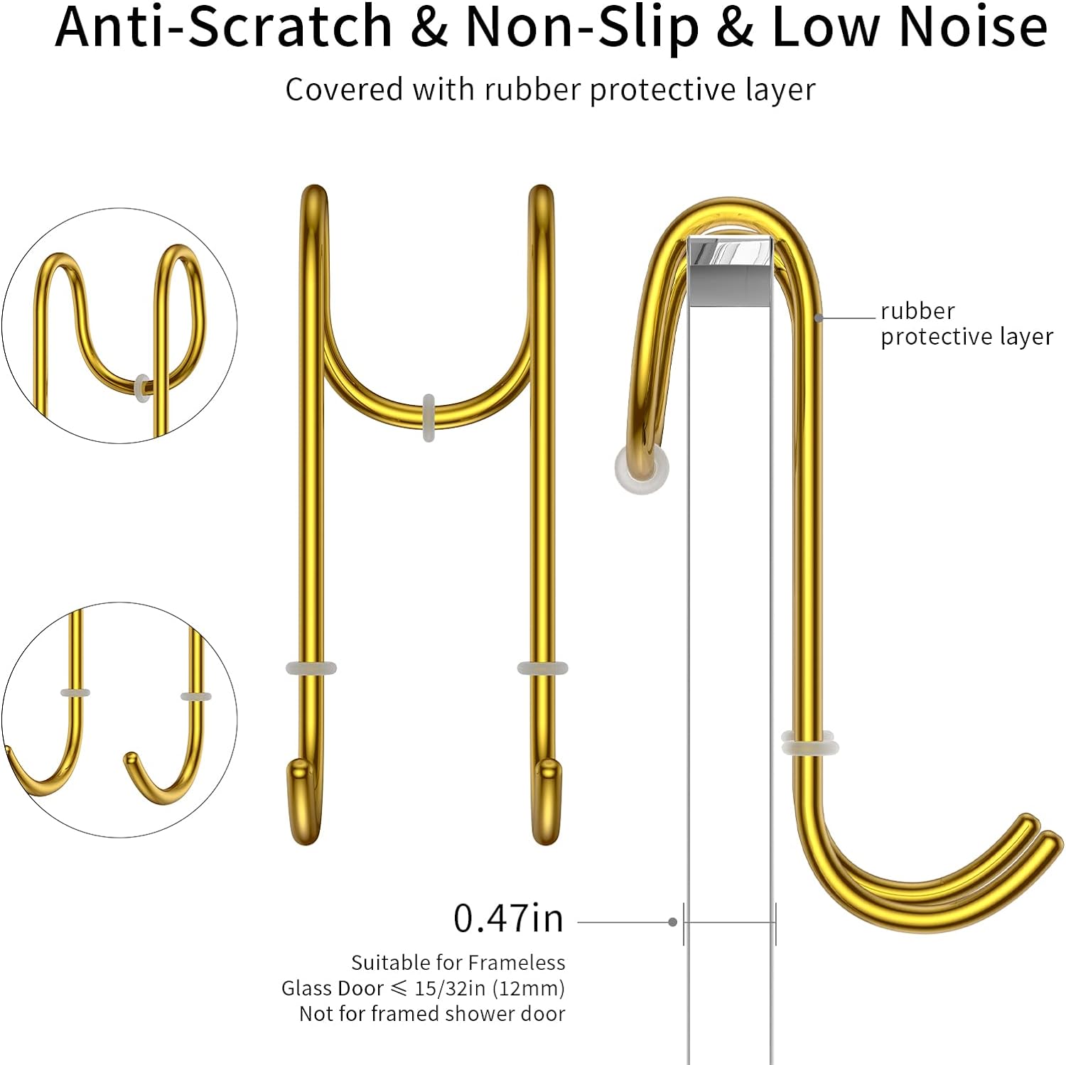 - EASY TO INSTALL AND STORE: The shower squeegee wiper can be stored almost anywhere for quick use. Smart design with an additional hole on the bottom of the silicone shower squeegee, allows you to hang it without the adhesive holder. And comes with an S-Shape hanger hook for the frameless shower door, removable and no drilling is needed. Even for your frame shower door, we include a strong self-adhesive holder that can be applied directly to clean indoor surfaces for easy squeegee hanging