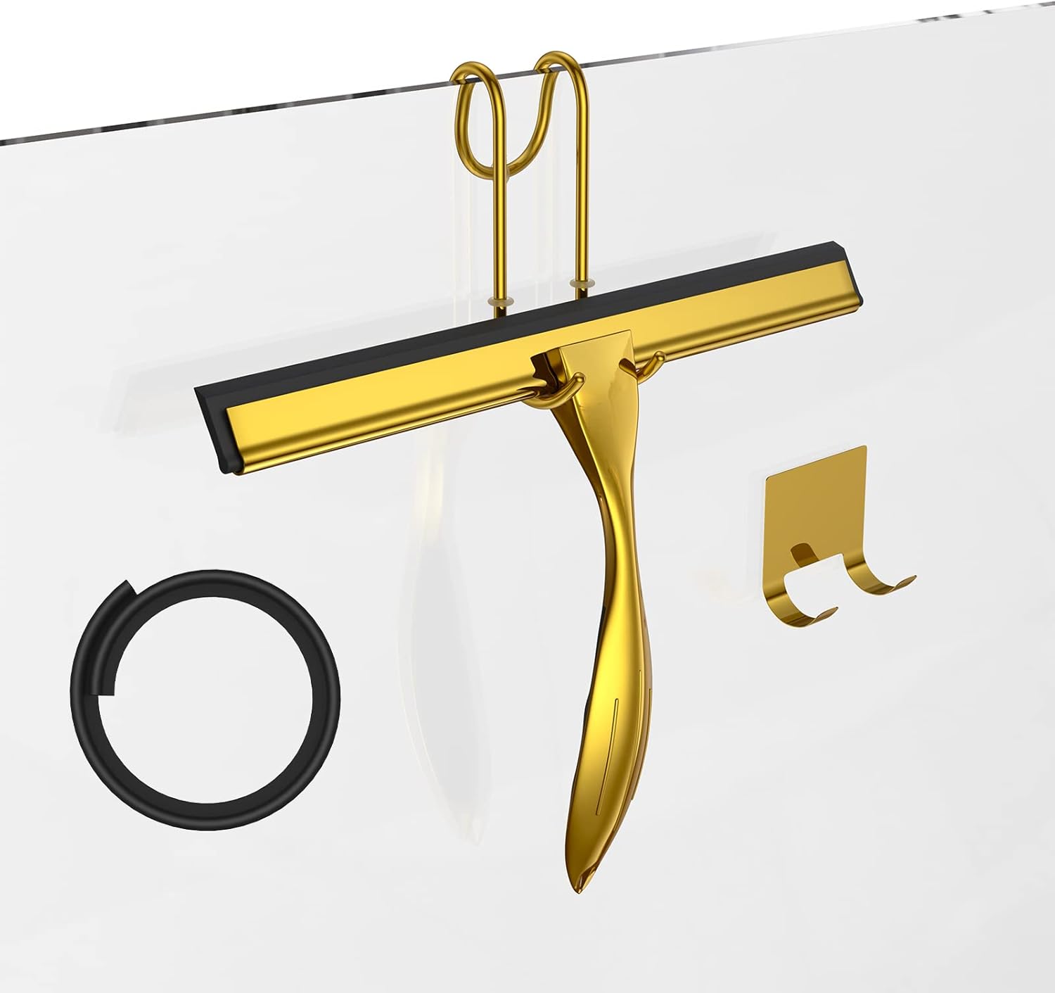 Shower Squeegee Set, 10-Inch Stainless Steel Squeegee for Bathroom, Shower Doors, Mirrors, Tiles, and Car Windows - 100% Streak Free, Includes Shower Door Hook, Adhesive Hook and Spare Silicone Blade