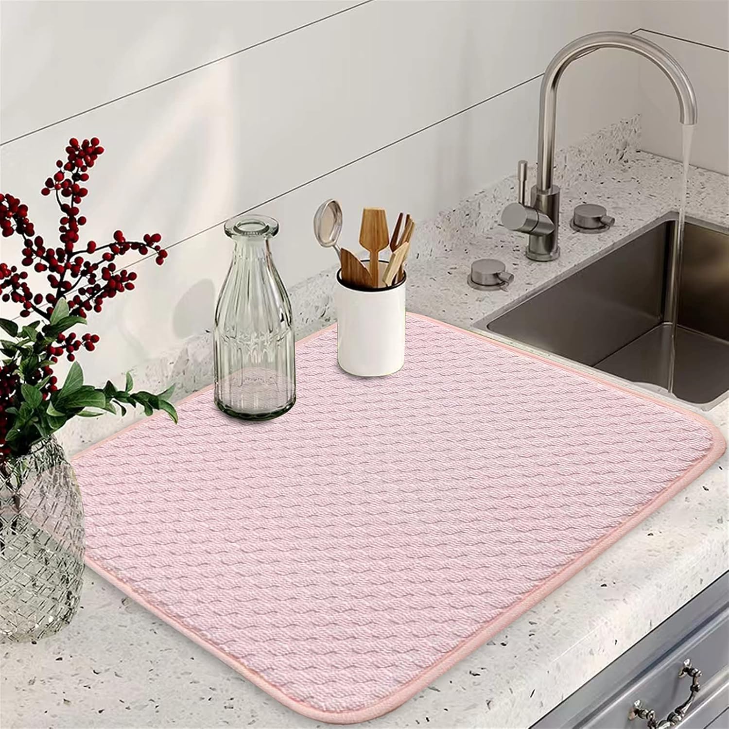 - 【Super Water Absorption】The pink kitchen mats made of microfiber. Absorbs up to 4 times its own weight in water to keep kitchen counter tops dry. Our 20*15 Inch large size countertop drying pad can hold more utensils. And it quickly absorbs water droplets under bowls, plate racks, cutlery, cups.