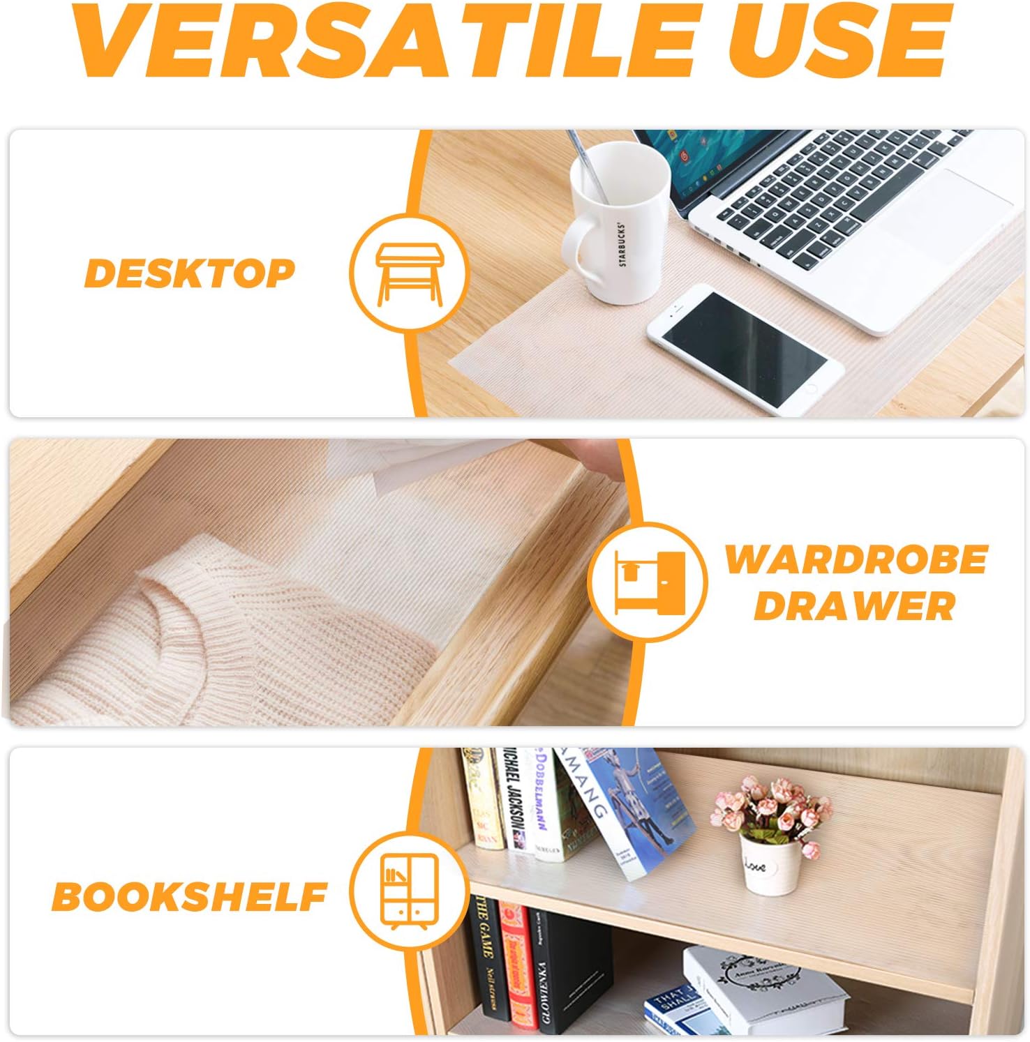 - MULTIPLE USAGES CABINET LINERS: This drawer liners for dresser can be cut into different shapes and sizes, to fit in kitchen cabinet, shelves, drawers, cabinets, kitchen furniture, dresser,wardrobe, refrigerator, office desk and counter tops or any other furniture where you want to create an extra durable solid surface