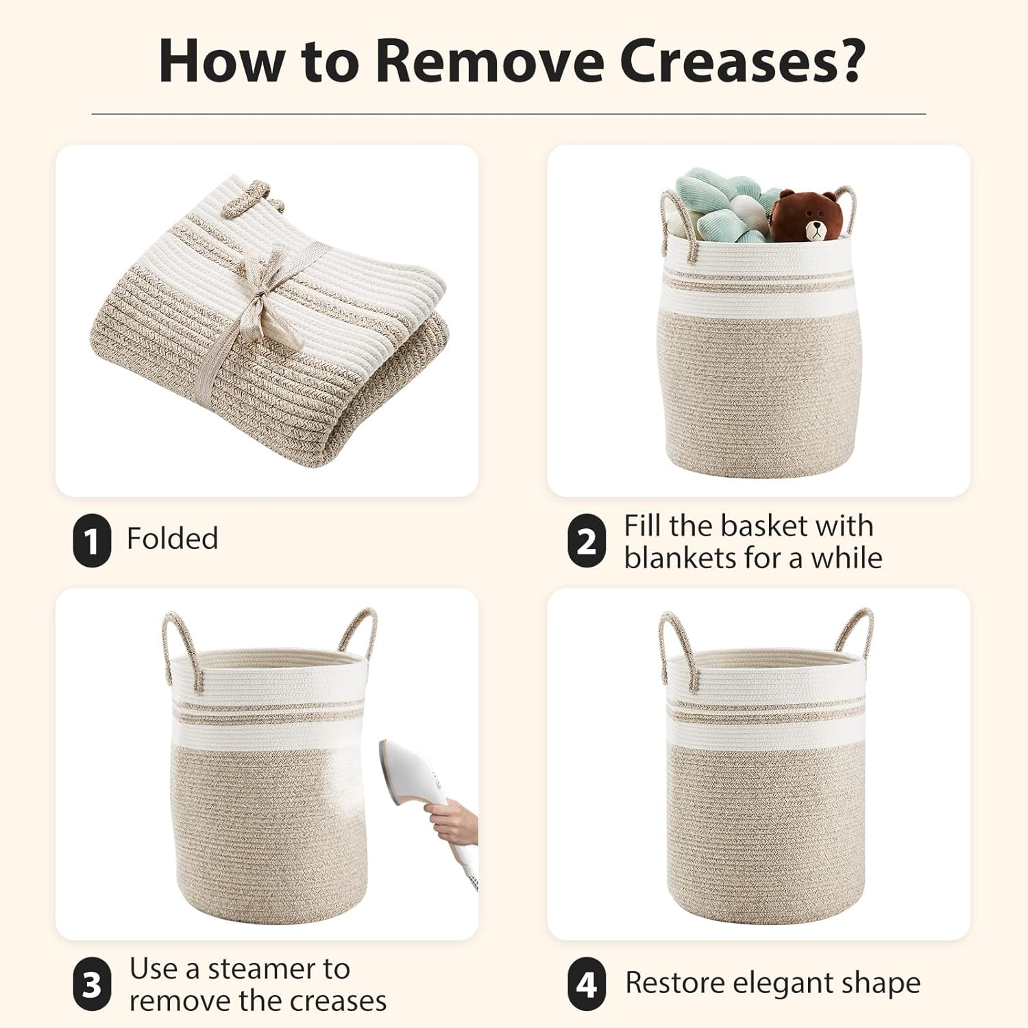 - ❤【Sturdy and Long-lasting Hamper】Our storage baskets are soft to the touch, but strong enough to fold up for storage at any time while retaining their shape and standing on their own. Even if it is accidentally played by children, the blanket basket will not leave signs of wear and tear! Has good abrasion resistance and durability. The large handle has reinforced stitching for durability and makes it easy and comfortable to carry heavy items around the house.