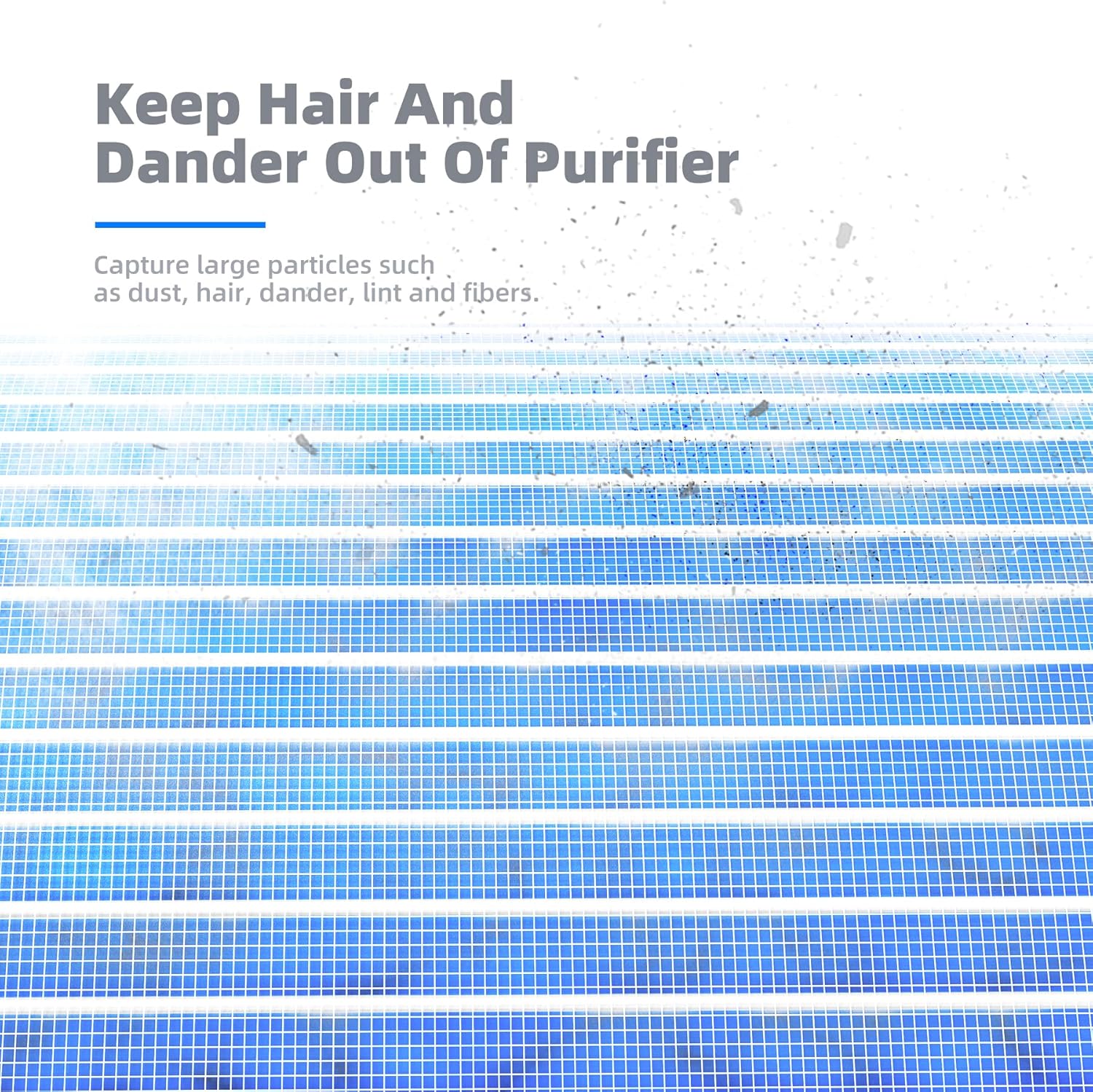 - Prevent Clogging: When hairs, dander, and other large particles meet the pre-filter layer, they will be blocked outside to prevent the air purifier from clogging.