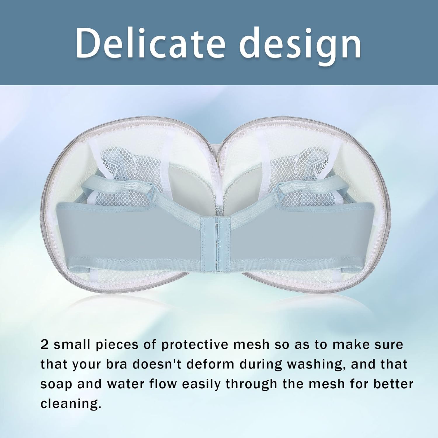- Mesh design: each delicate laundry bag has 2 small pieces of protective mesh so as to make sure that your bra doesn't deform during washing, and that soap and water flow easily through the mesh for better cleaning