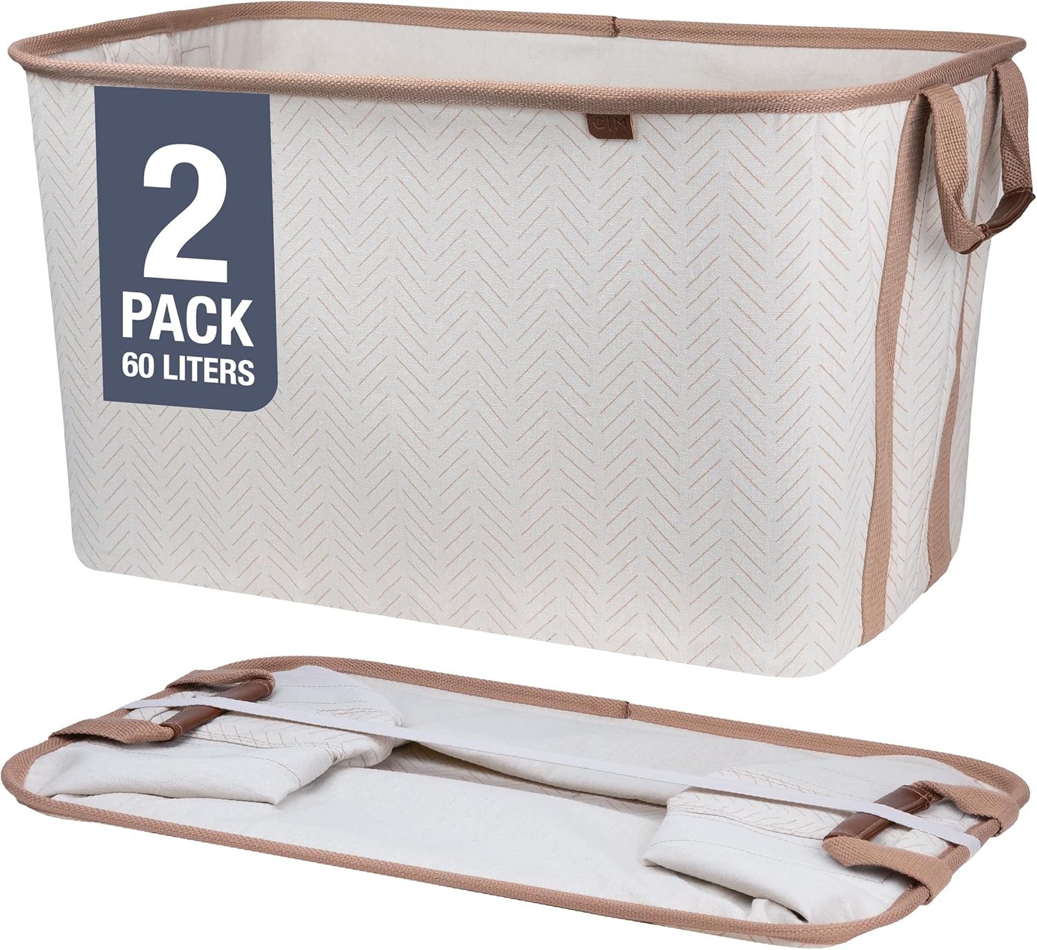 CleverMade Collapsible Laundry Basket Hamper - LUXE Cream Herringbone 2Pack 60L -SpaceSaving Storage Organizer with Handles Foldable Home Organization