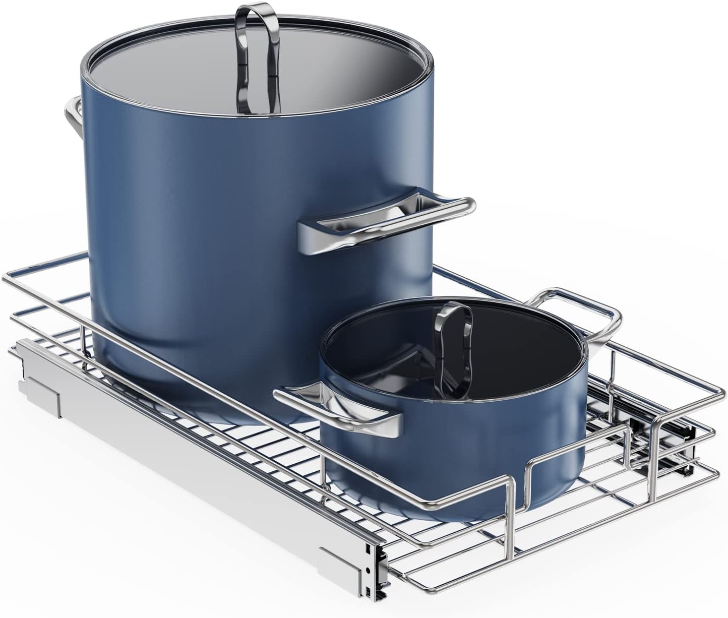 ROOMTEC Pull Out Cabinet Organizer, Cabinet Pull Out Shelves 11" W x 18" D, Heavy Duty Cabinet Drawers Slide Out Kitchen Cabinet Organizers Storage Shelf