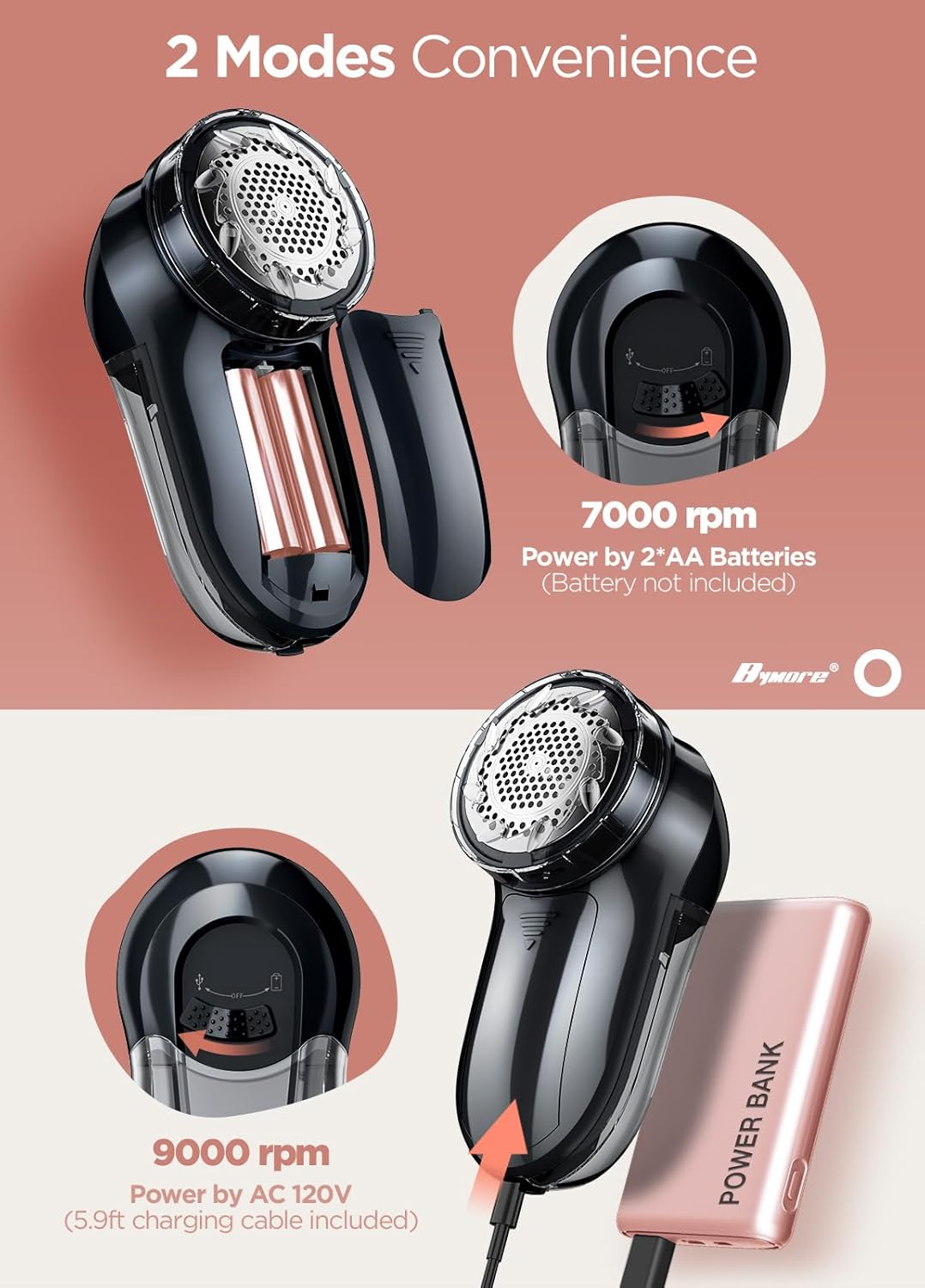 Bymore Fabric Shaver, Lint Remover, Lint Shaver Defuzzer Sweater Shaver for Clothes and Furniture AC Adapter Operated Pill Fuzz Remover (Space Black)