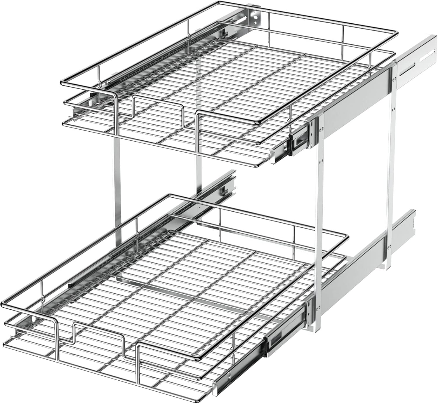 LOVMOR 2 Tier Individual Pull Out Cabinet Organizer 14" W x 18" D, Slide Out Kitchen Cabinet Storage Sliding Shelves
