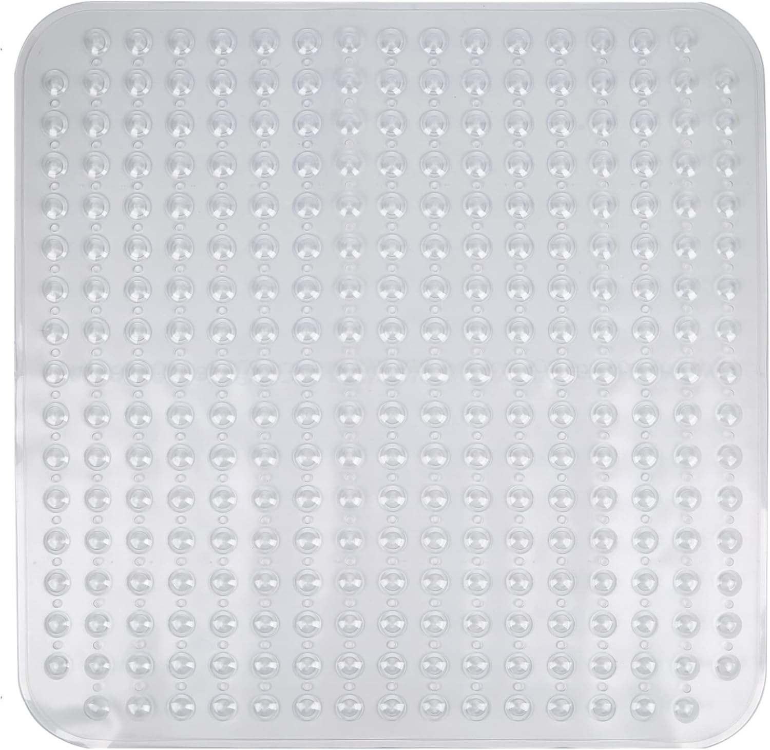 ENKOSI Extra Large Square Non Slip Shower Mat - 31 x 31-inch XL Bathroom Shower Mat - Square Shower Matts for Shower Stall Floors | Secure Suction Cups and Drain Holes (31x31 Clear)