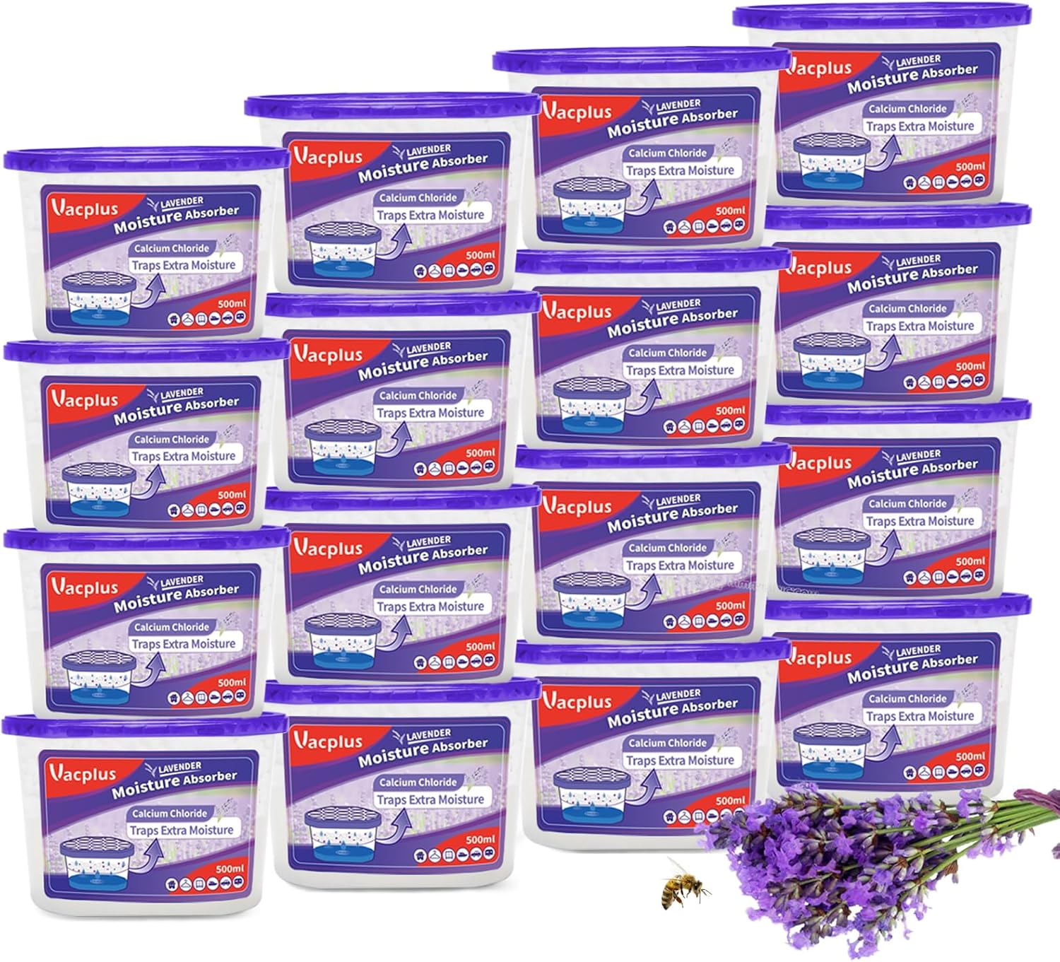 Vacplus Moisture Absorbers 16 Pack, 10.5 Oz, Humidity Absorber Boxes Attracts Extra Moisture from Your Bathroom, Closet, Kitchen, Dehumidifier for Closet (Lavender Scent), Purple