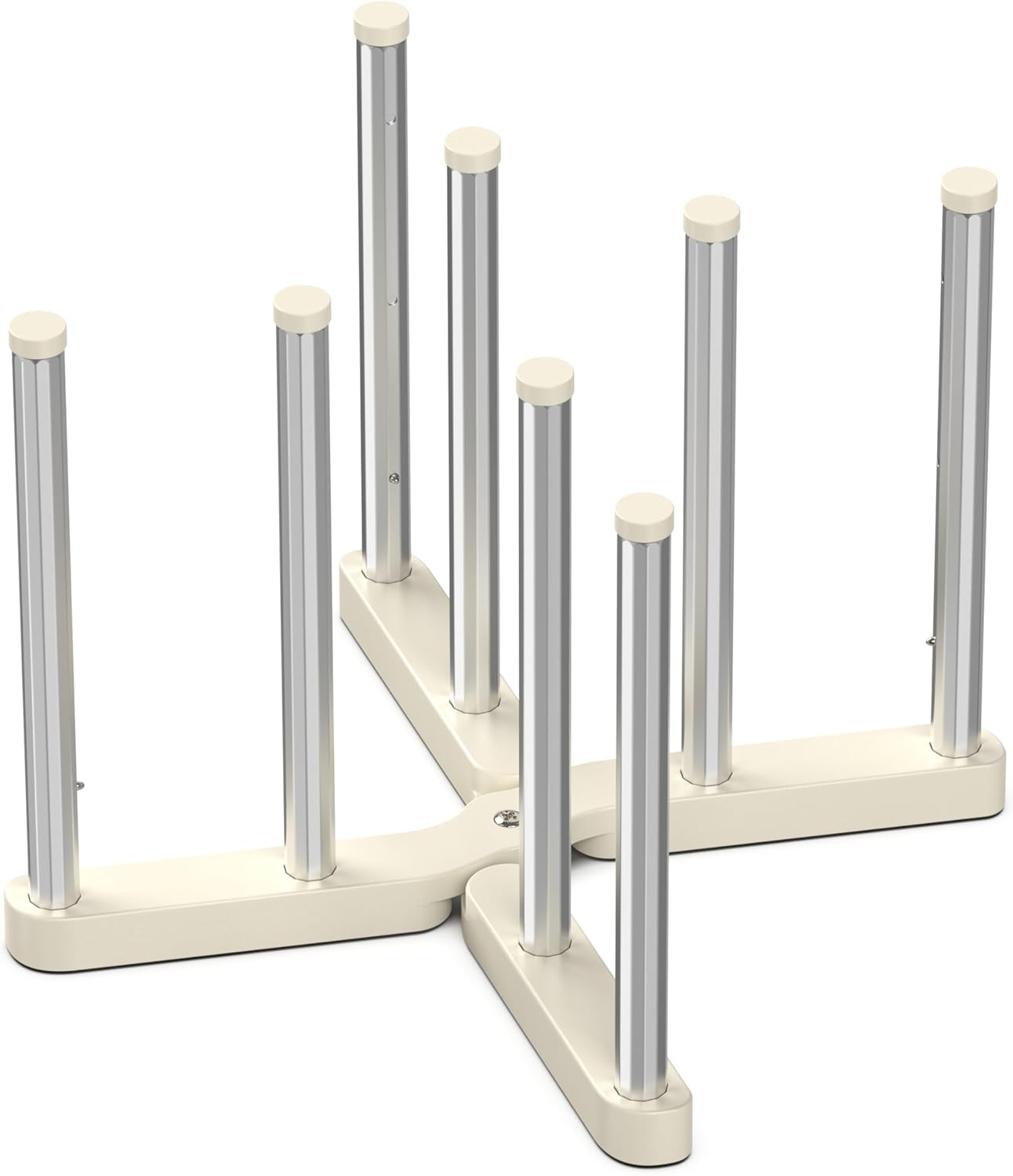 - ăHigh-quality MaterialăThe collapsible drying rack is made of durable and eco-friendly materials, the eight rods are made of aluminum with plastic hats on the top and two sturdy plastic bases on the bottom, there are also four anti-slip pads on the bottom of the base.
