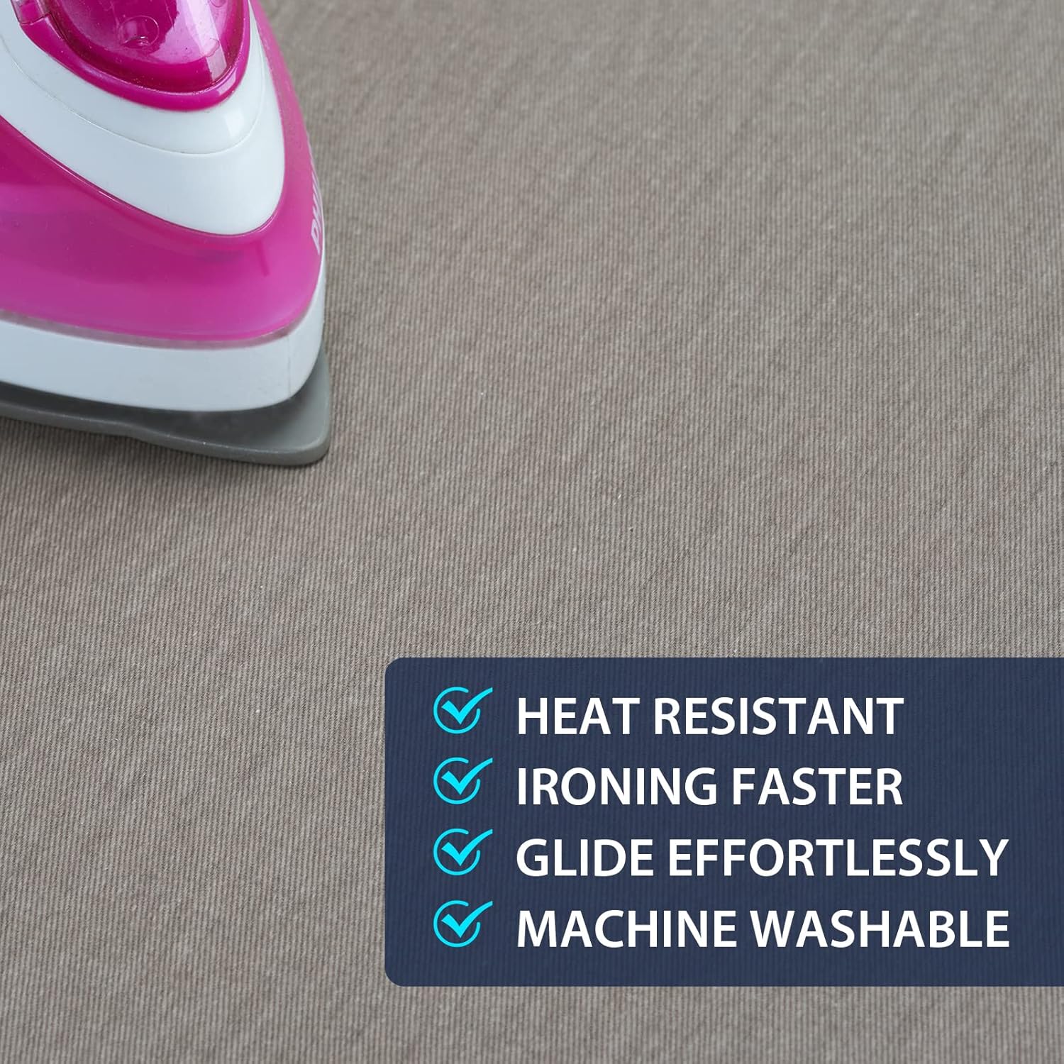 - EXTRA THICK MATERIAL FOR BETTER IRONING: This ironing board cover adopts natural breathable cotton with scorch resistant finish as cover. Using ultra thick stitched fibers, the thickness can reach 6mm. This synthetic fiber evenly radiate heat and steam, achieve high temperature ironing and safer