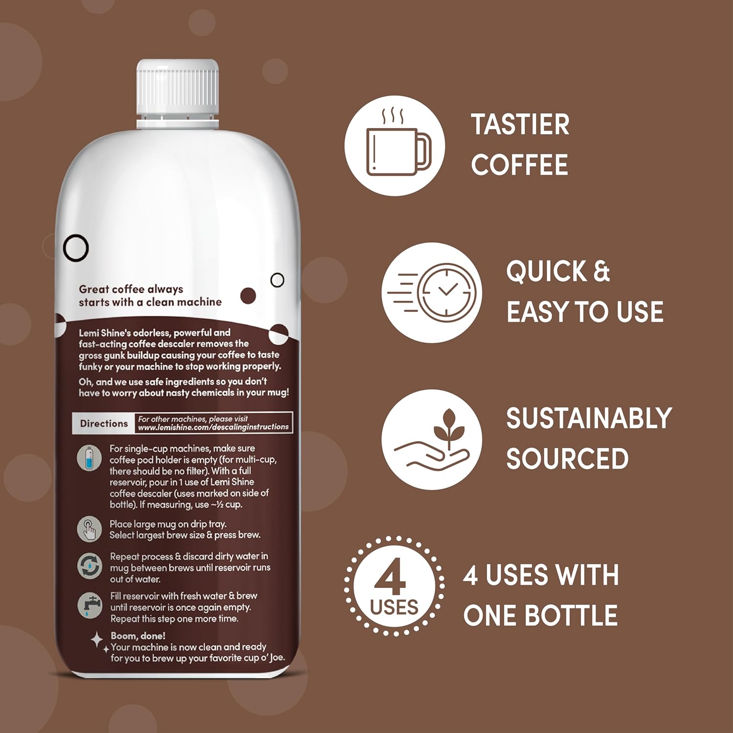 Lemi Shine Coffee Descaler - Food-Grade Citric Acid Coffee Maker Cleaner for Nespresso, Keurig, and More - 15 oz