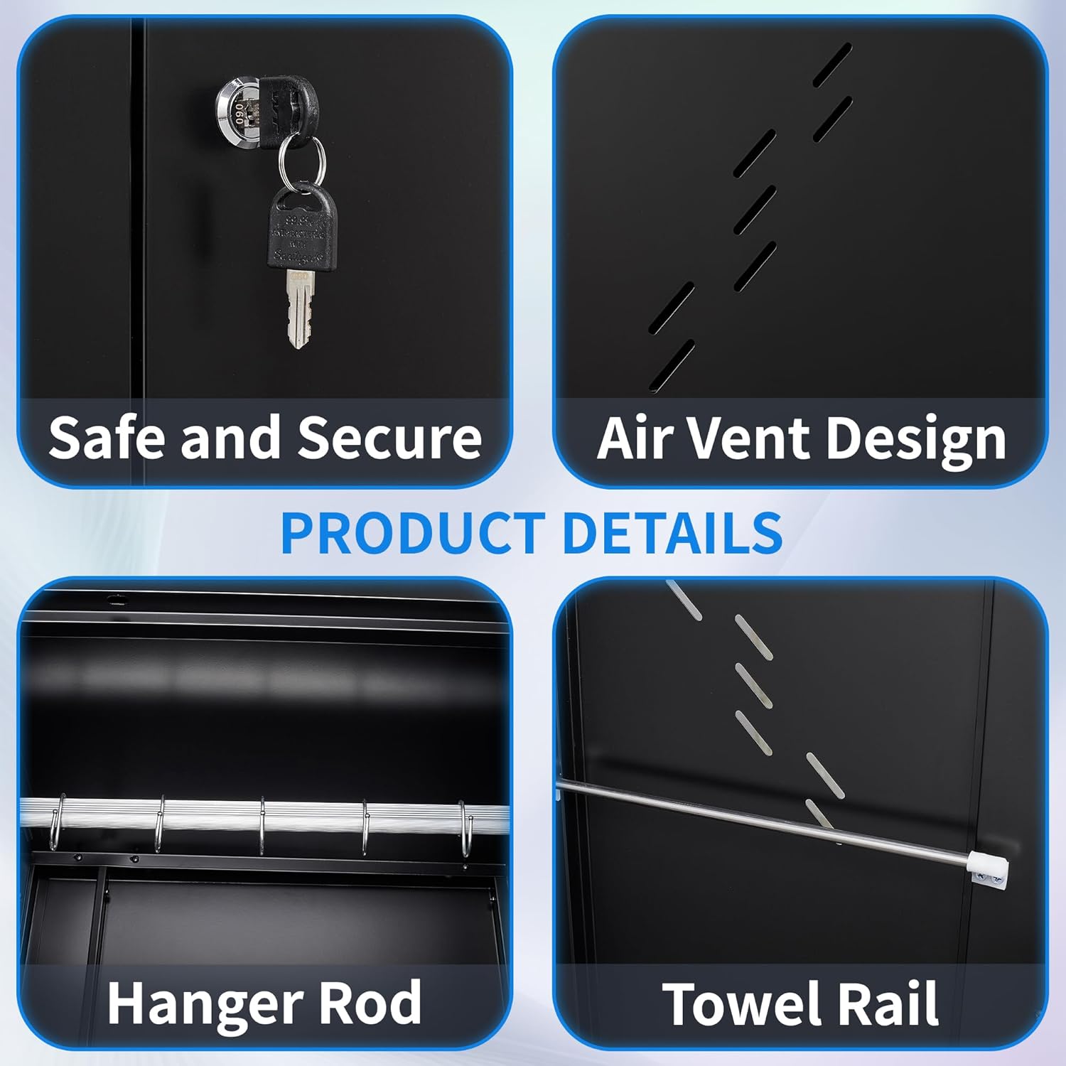 - 【Durable Construction】-Made of all-steel material and powder-coated, our broom closet cabinet is built to last. The high lockers with doors have strong corrosion resistance and rust resistance, making them more durable than wooden lockers. This ensures that your items are safely stored and protected for a long time.